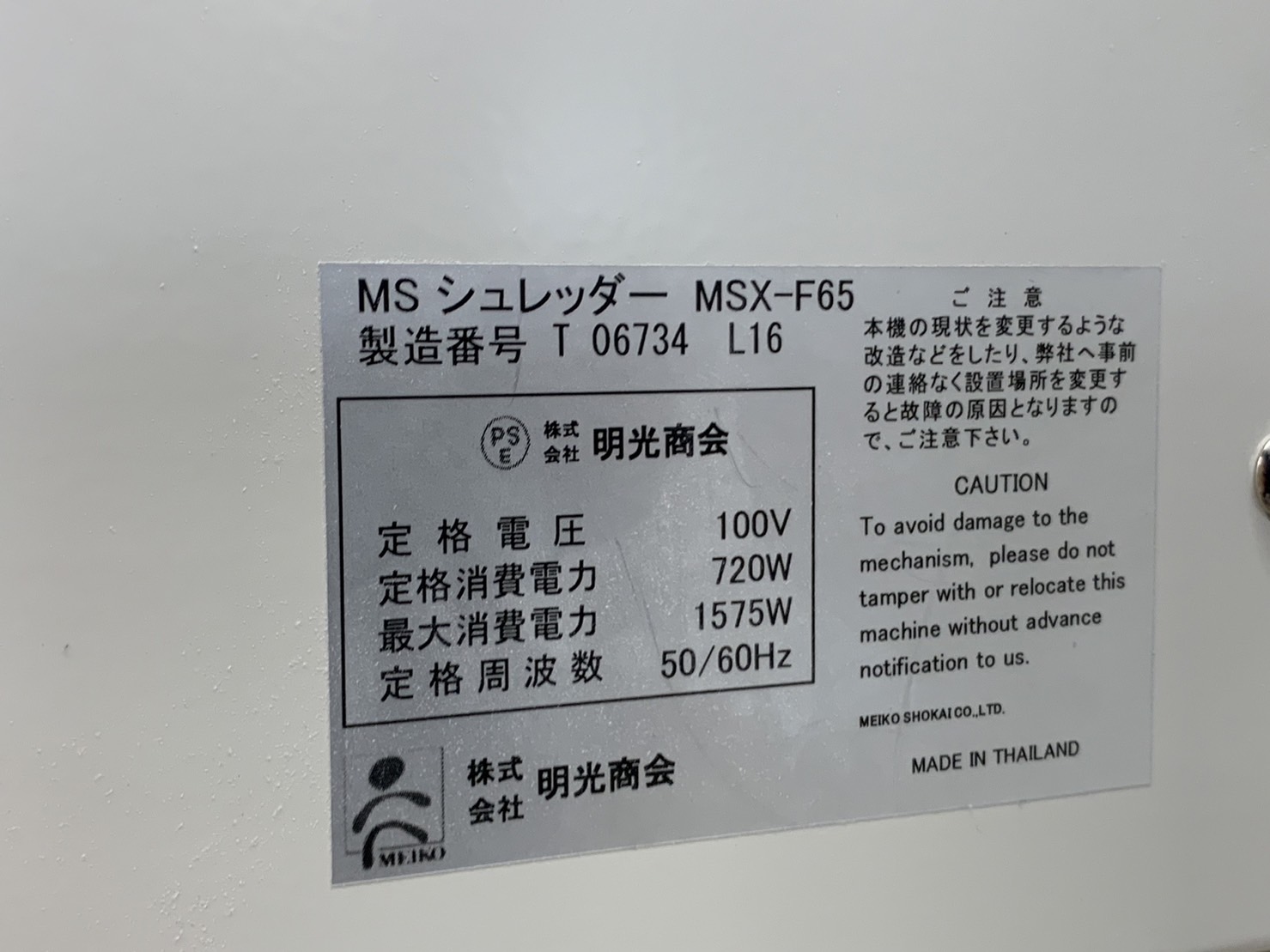 【2016年製】【最大約65枚裁断】脅威のハイパワー!クロスカット業務用オフィスシュレッダー◆明光商会製MSX-F65【RP】- 埼玉本店