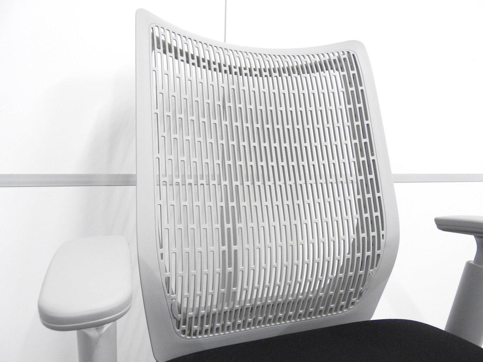 背によりかかるとバックシェルのグリッドが変形し、やさしく身体を支えます。