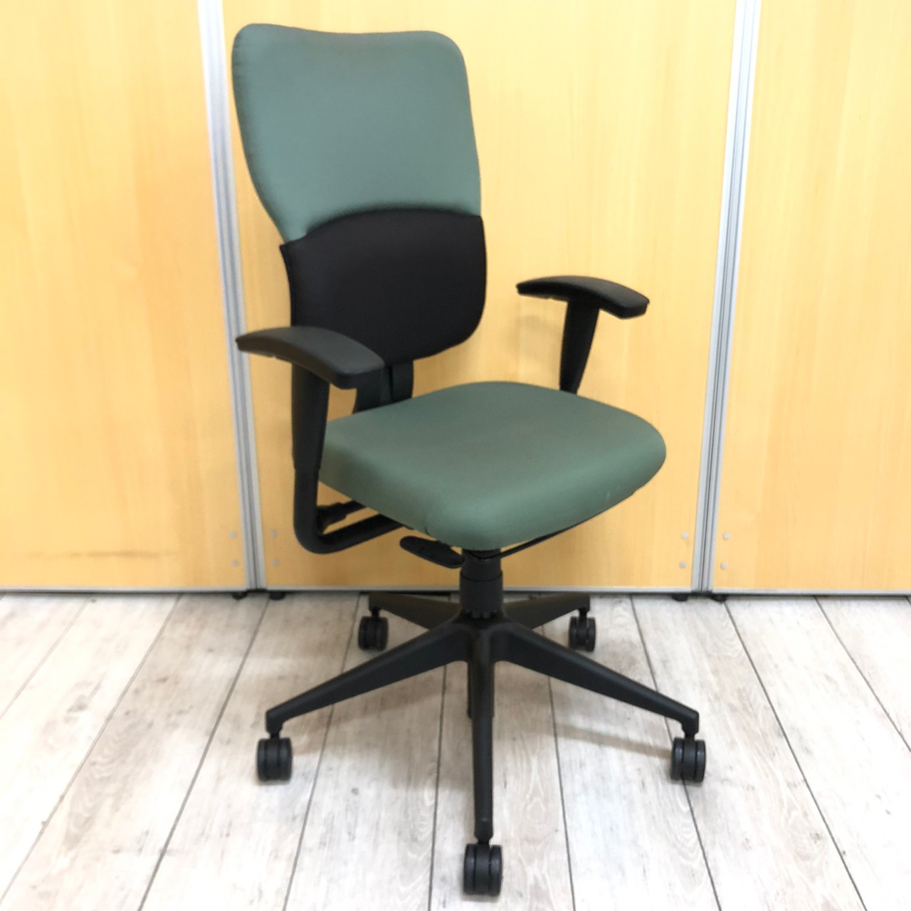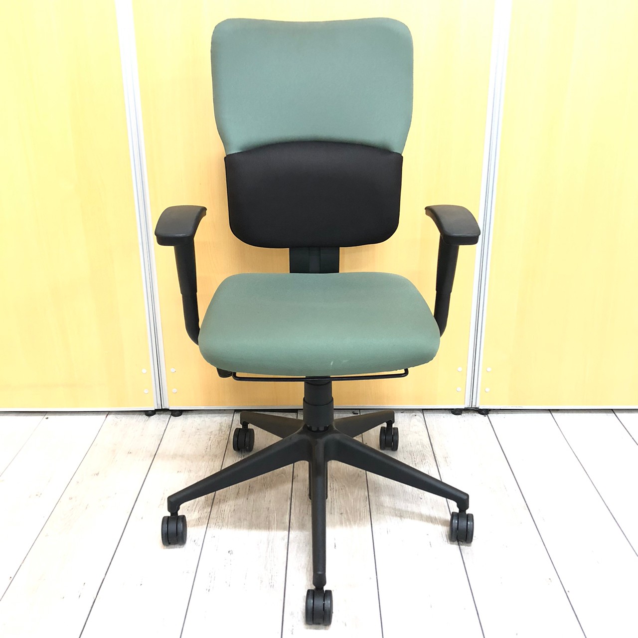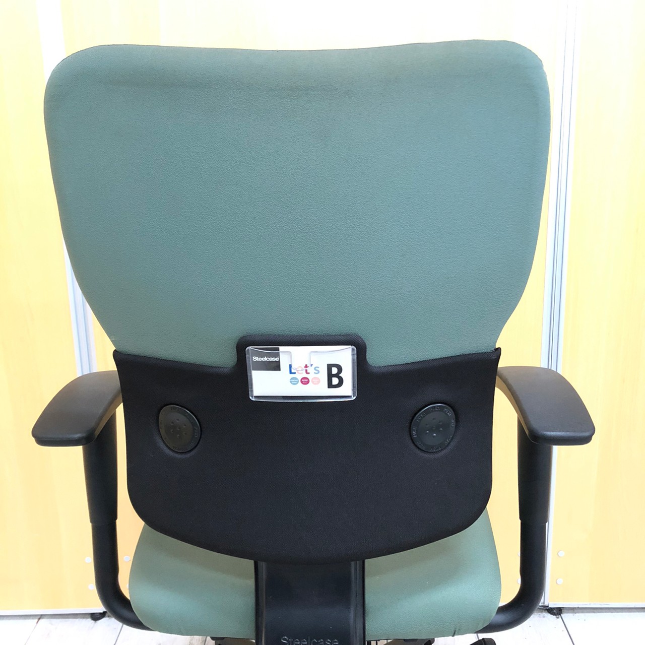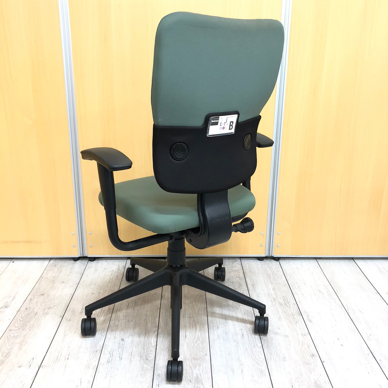 【身体の動きに柔軟にフィット!】■Steelcase製 レッツビーチェア 可動肘 グリーン ■良い品がお買い得!【Let's B】- 川崎店
