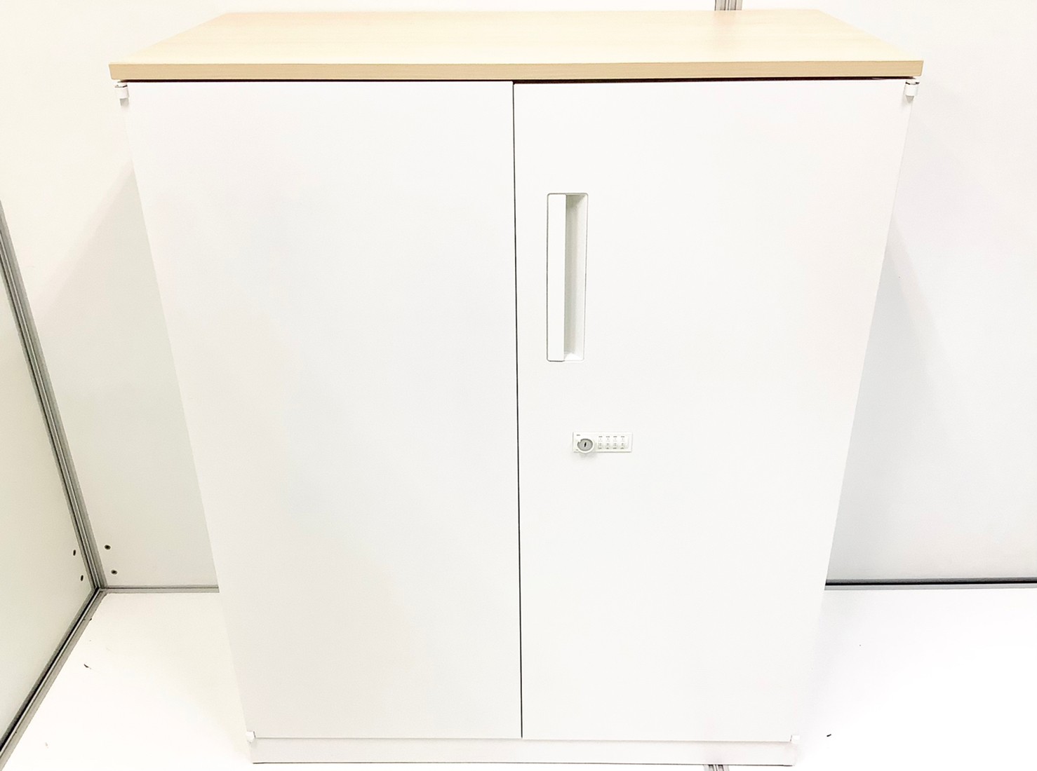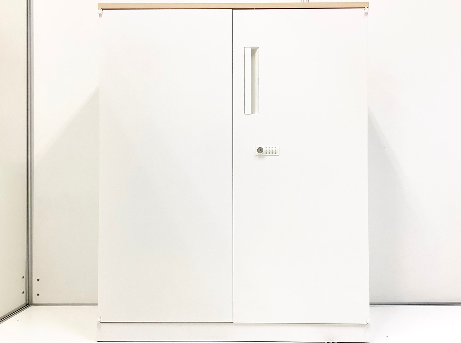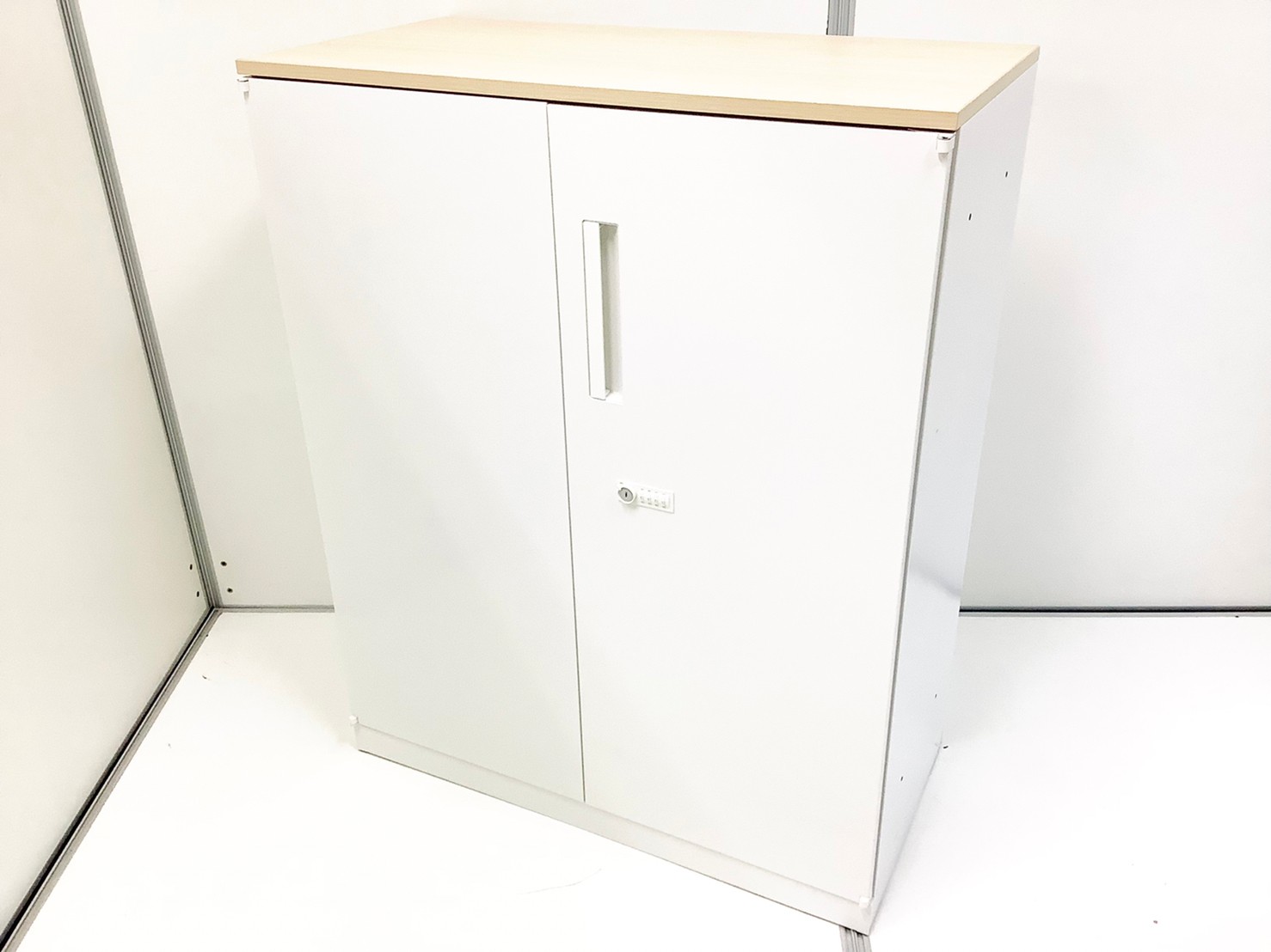 【在庫入替セール品!】人気の観音開きタイプ!取っ手が大きく使い勝手のよい定番キャビネット! ■内田洋行/HSシリーズ/ホワイト 天板ナチュラル