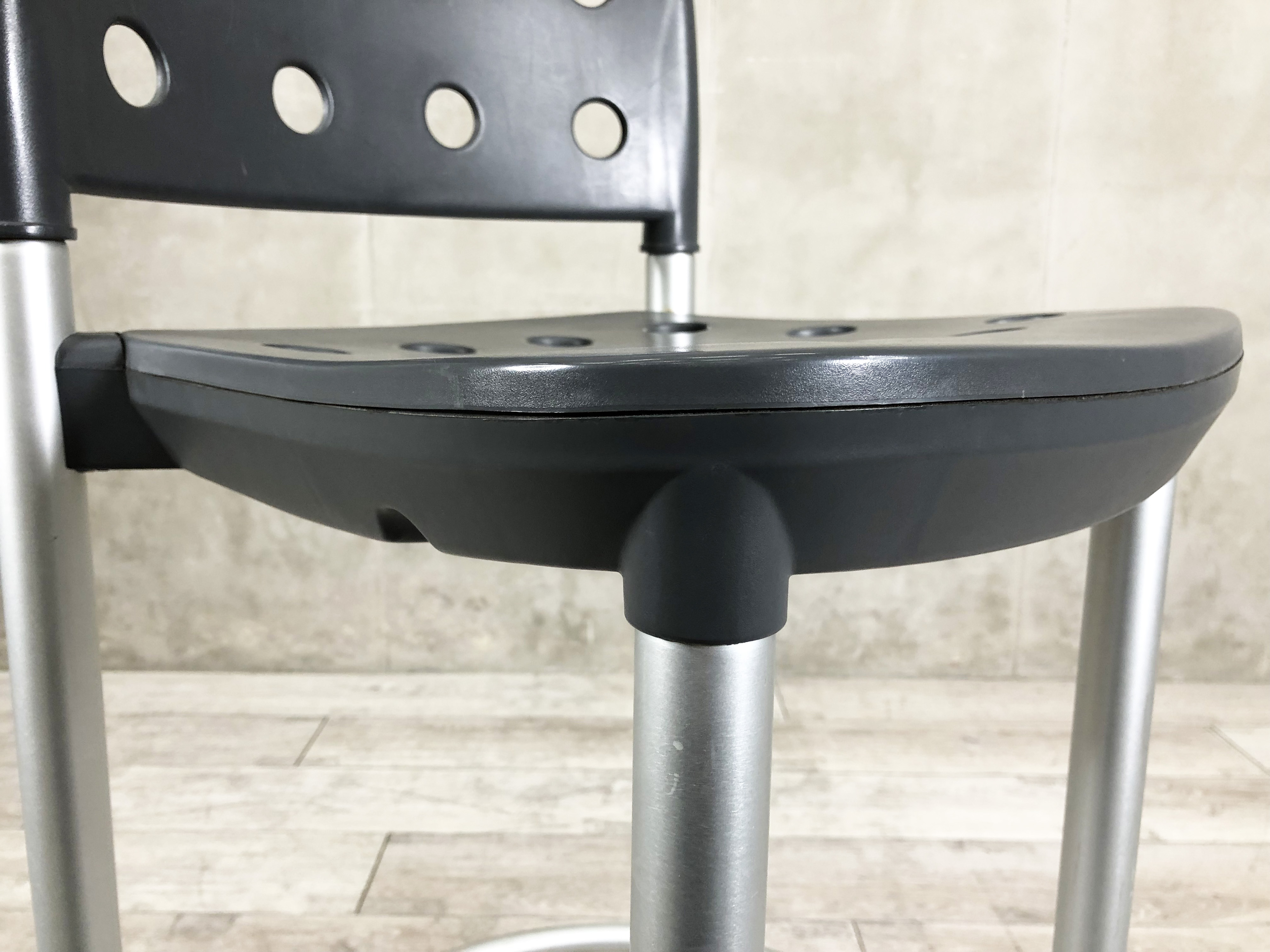座面のプラスティックはクッション性を重視して少し柔軟なポリプロピレン樹脂を用いて座りやすさを実現。脚を支える部分は強度を出すためにより硬いポリアミド樹脂を使用。機能性・すわり心地共に追及しています。