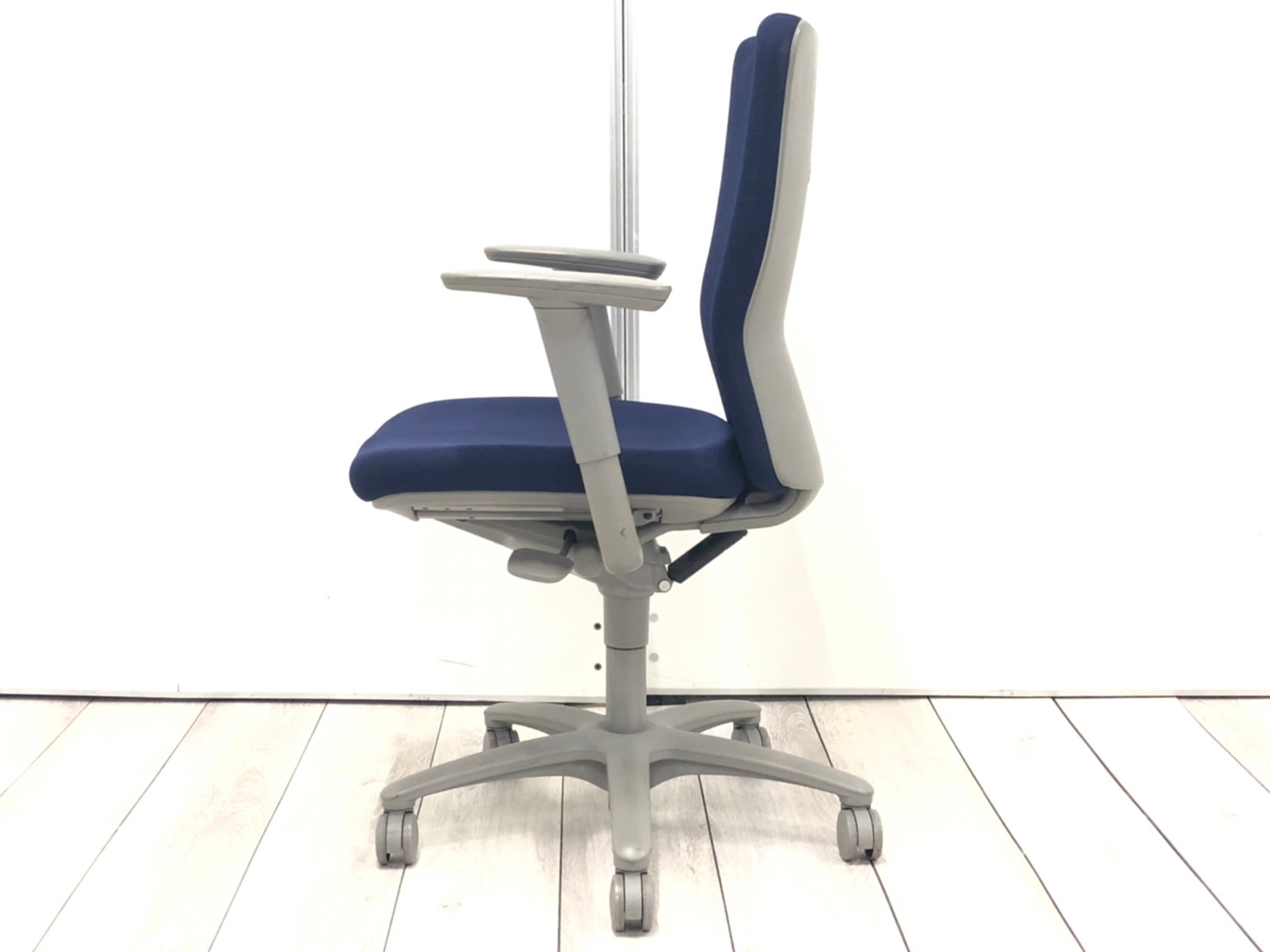 【長年愛されるロングセラーチェア! 厚めのクッションで疲れにくい!】■オカムラ(okamura)/カロッツァ 肘付ハイバック ■サークル肘 ■ブルー×グレーシェル