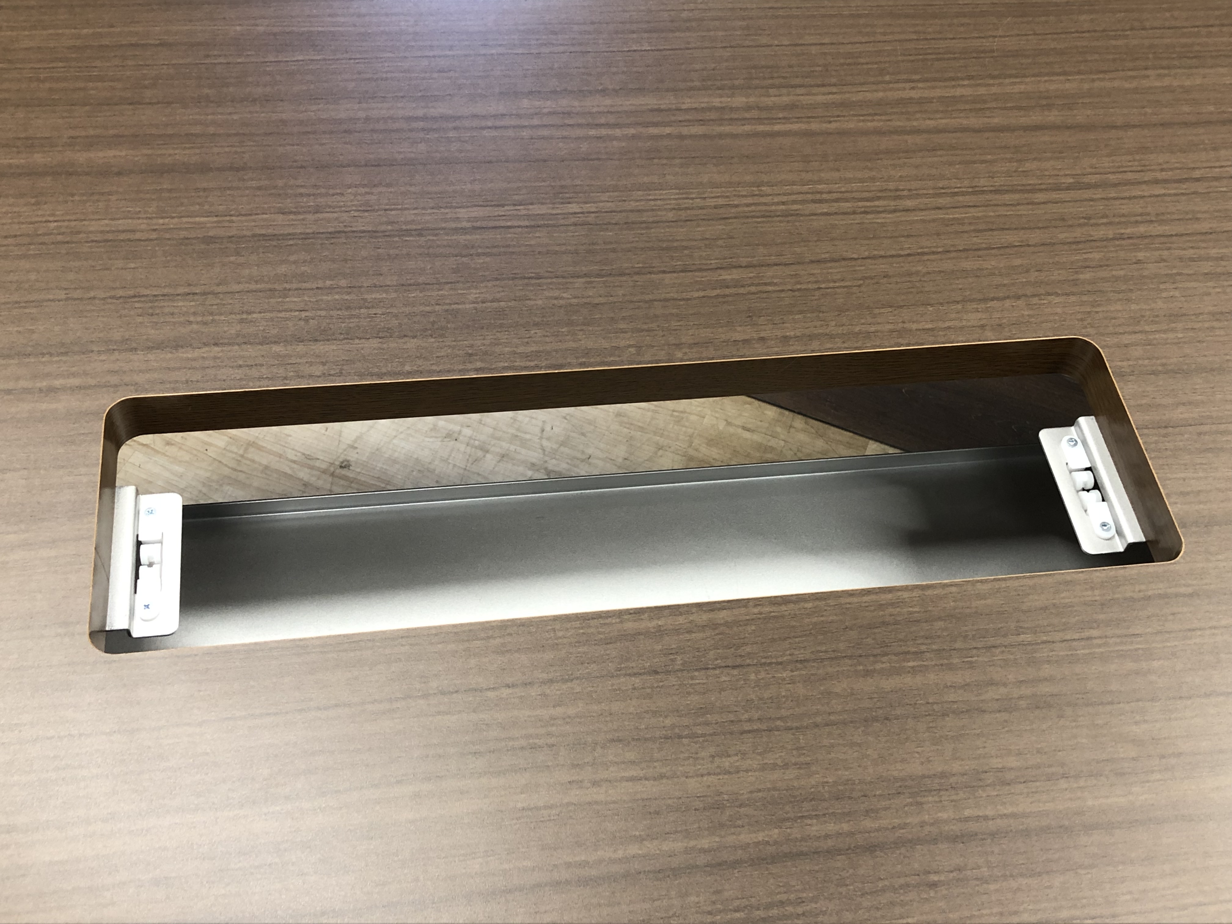 配線対応天板仕様でカバーを外せば大型の電源タップを投げ込めます。