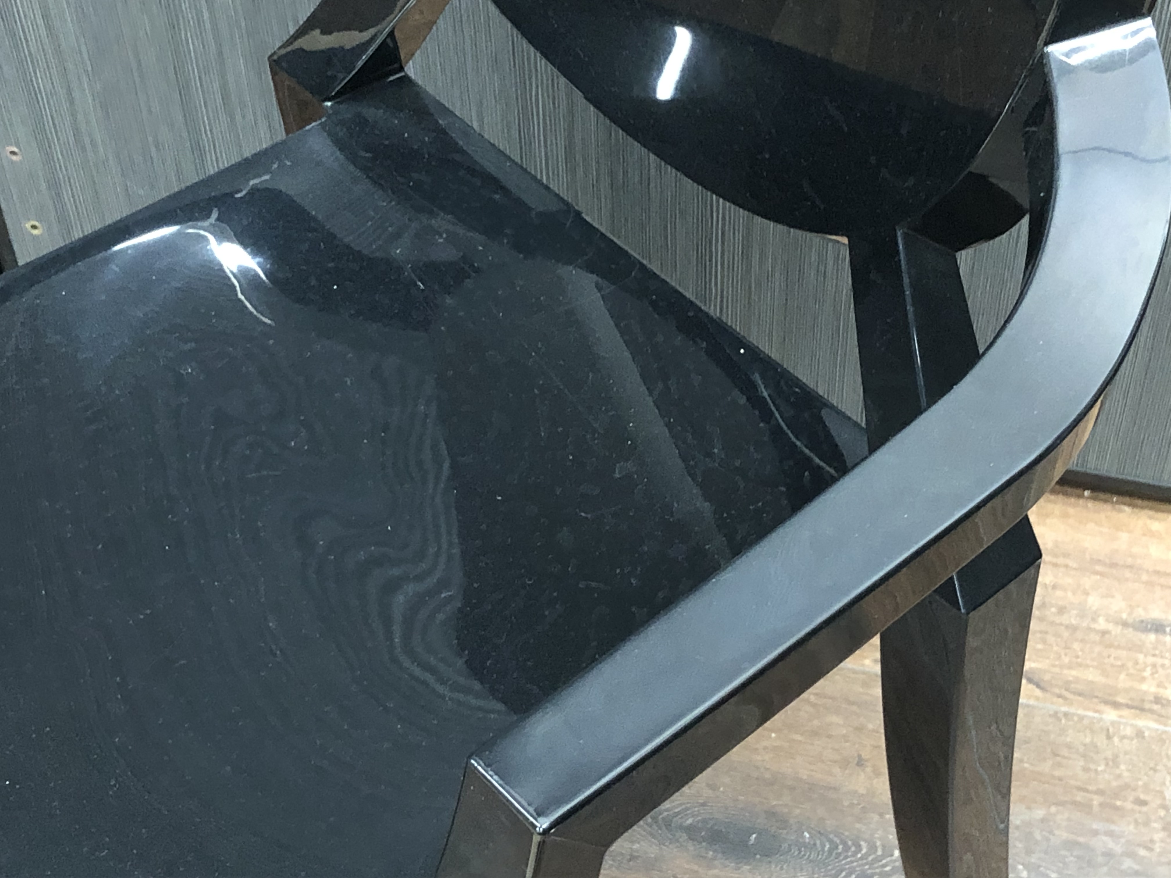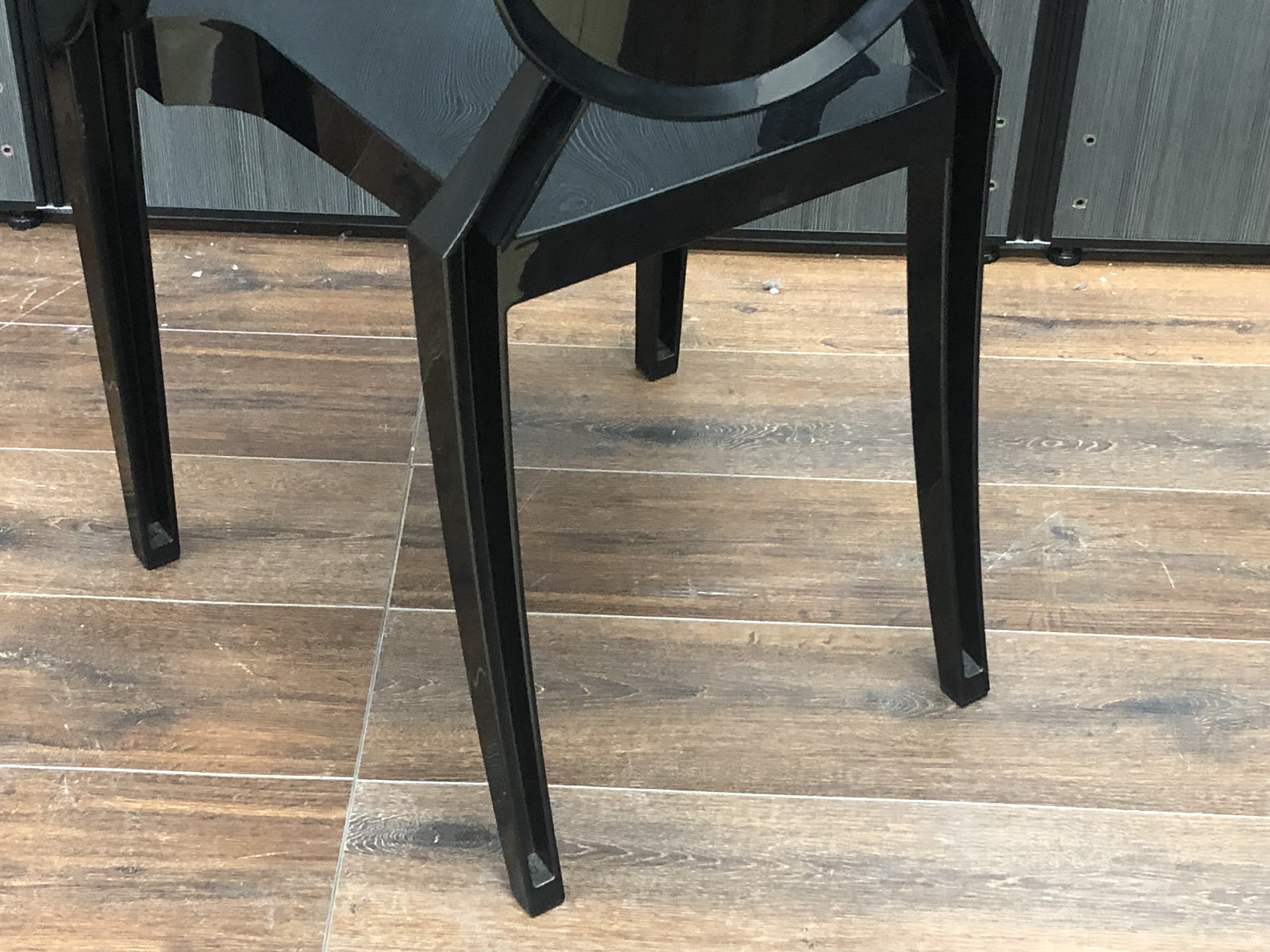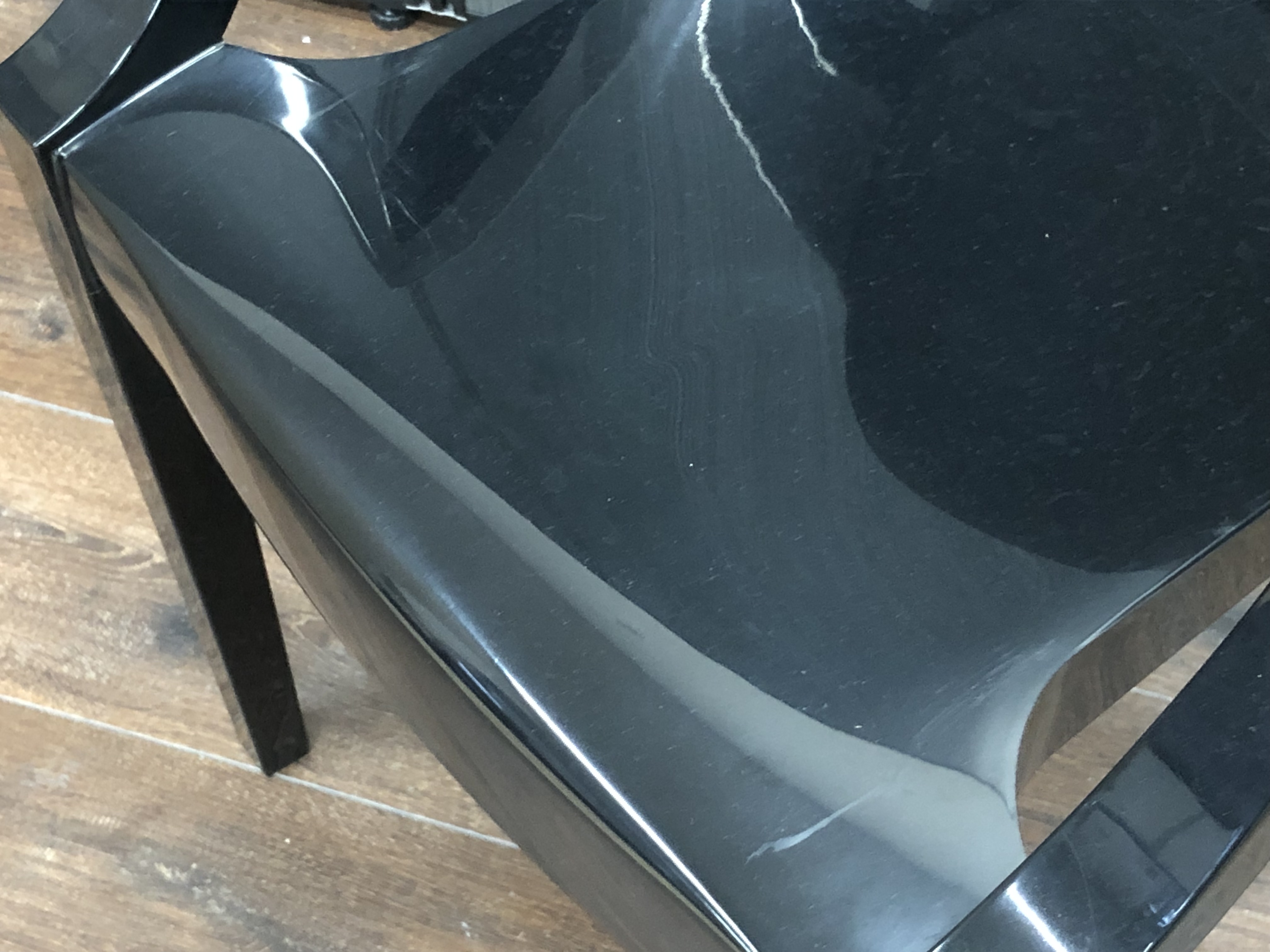 - かなり強い濃い黄ばみ・変色が商品全体にある。(例、座面・背もたれ、脚部等にある。)