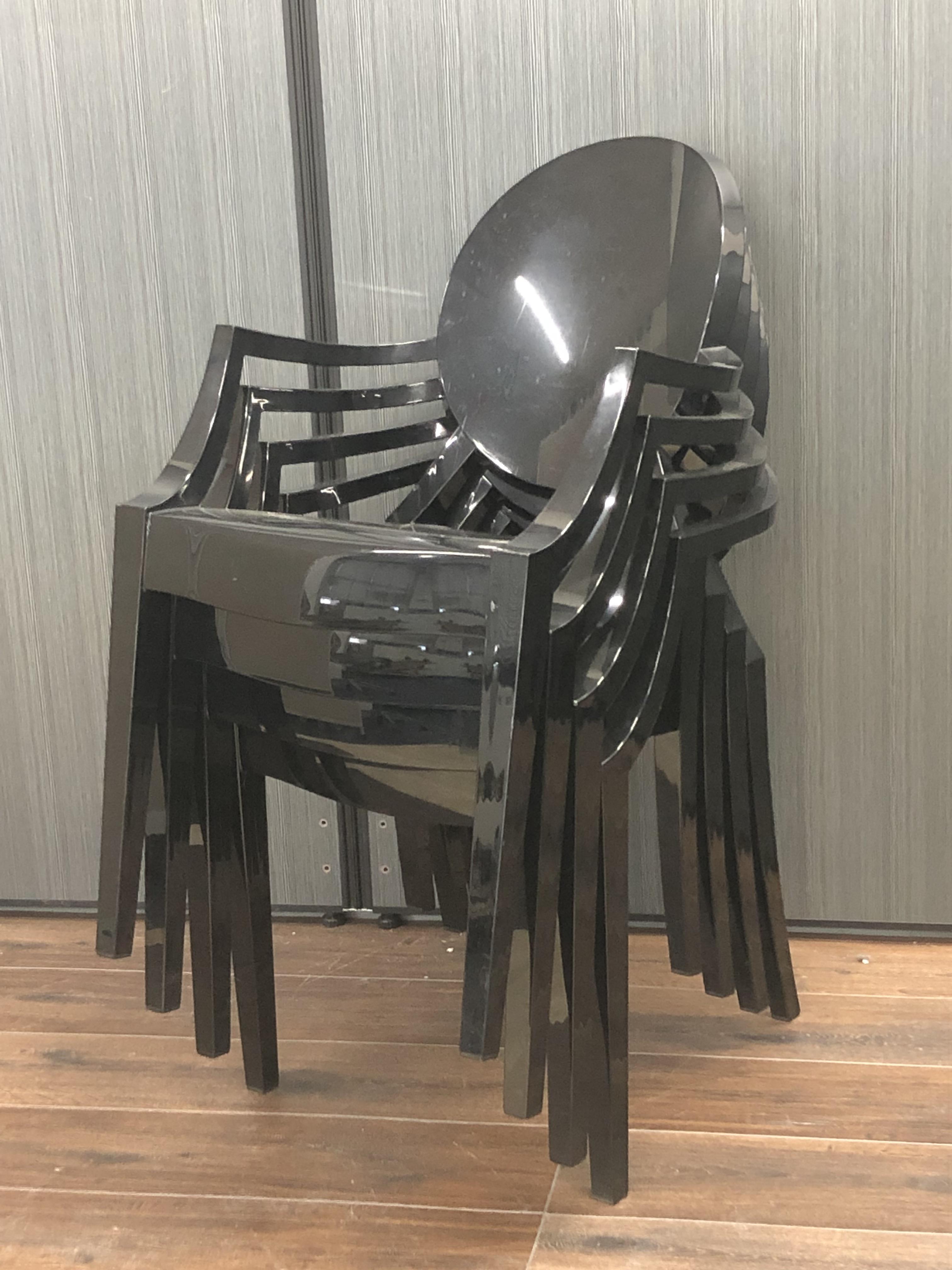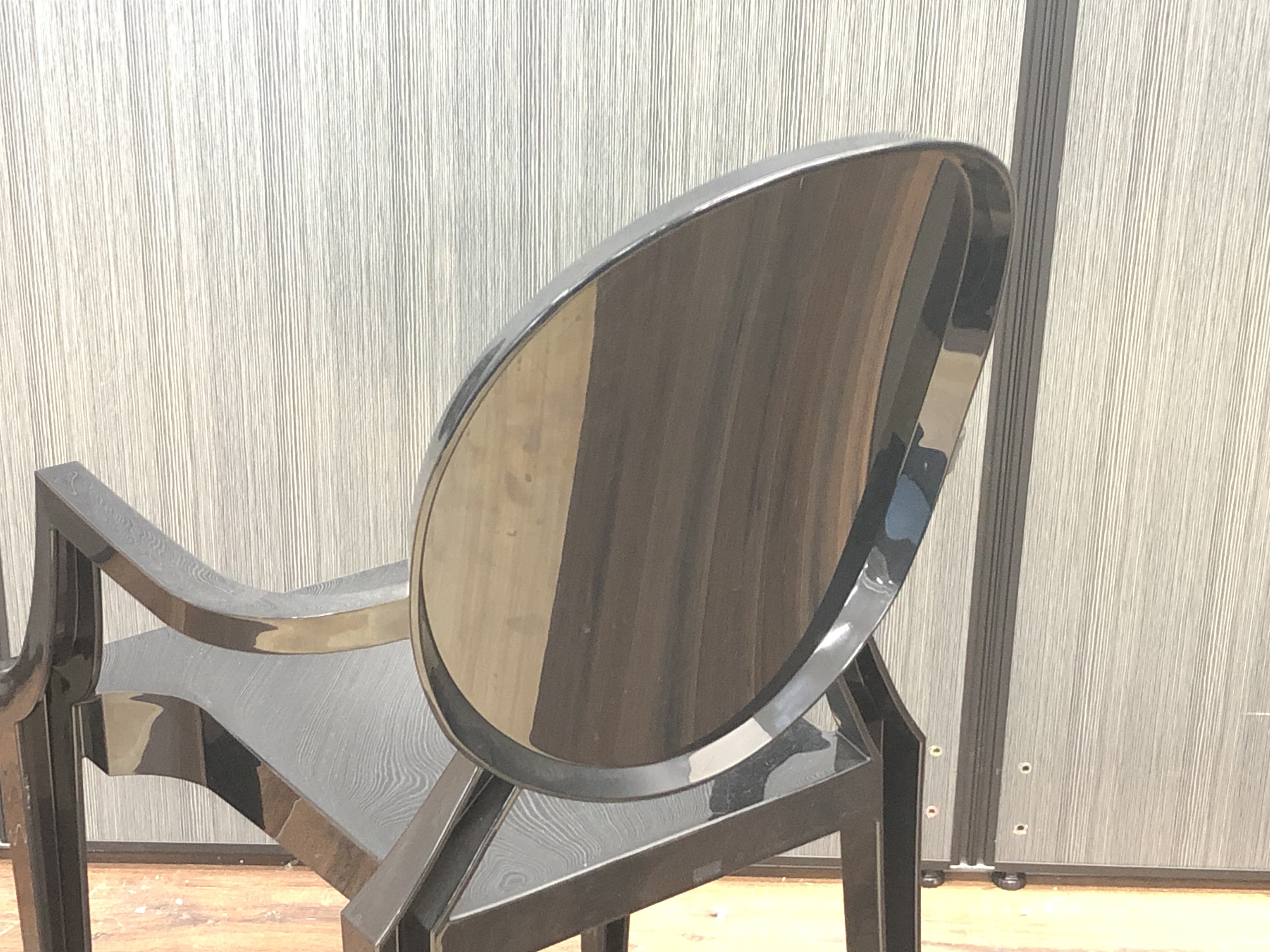 ルイ15世スタイルの椅子をポリカーボネート樹脂でユニークに再現した肘掛けチェアです。