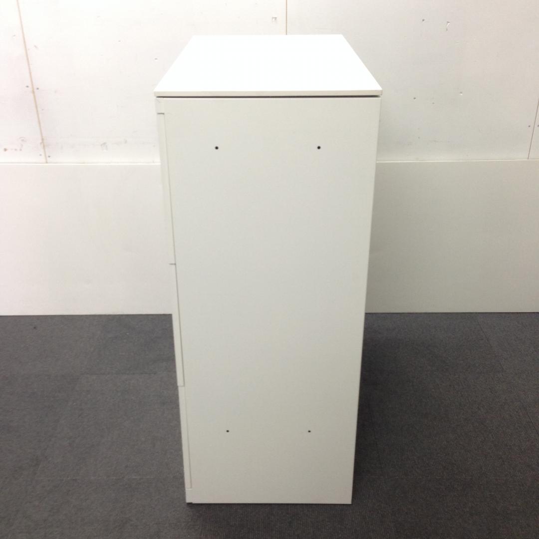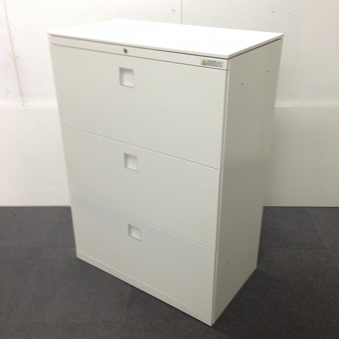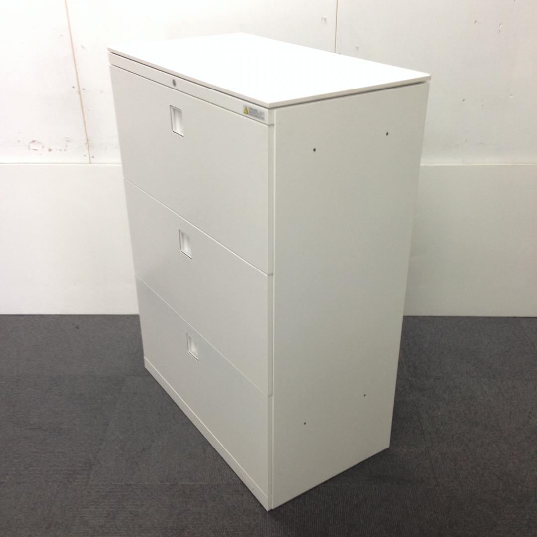 オカムラ レクトライン 3段ラテラル書庫 ホワイト天板 シリンダー錠 鍵付き ※取っ手部分に若干日焼けあり