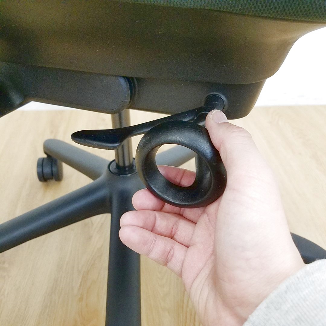 - 座ったまま、レバー操作一つで、簡単に座面を前傾できます。前傾姿勢を取ることが多いデスクワーカーに最適です。