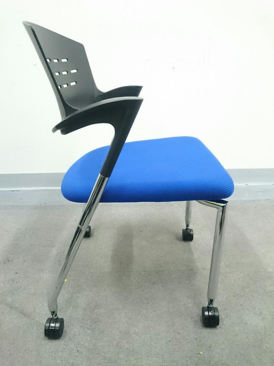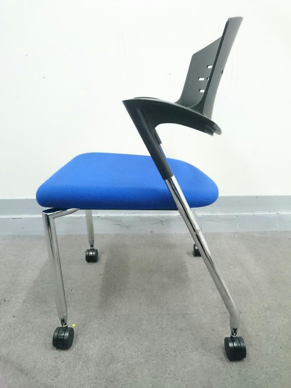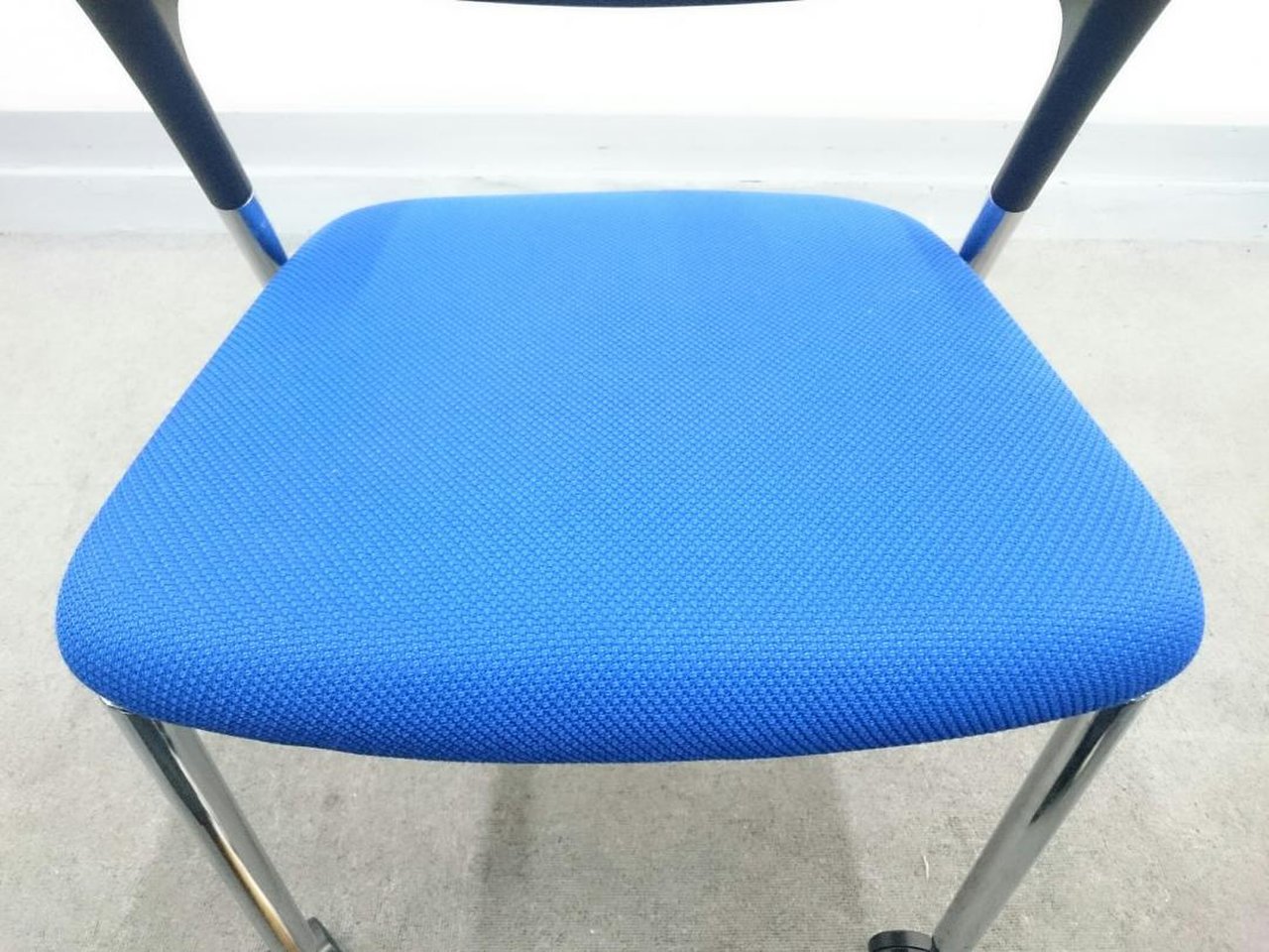 【厚みのあるクッションが快適!】■イトーキ製 カクタスシリーズ スタッキングチェア ブルー 【キャスター付/会議用チェア】※4脚1セットからの販売となります。- 品川・三田店