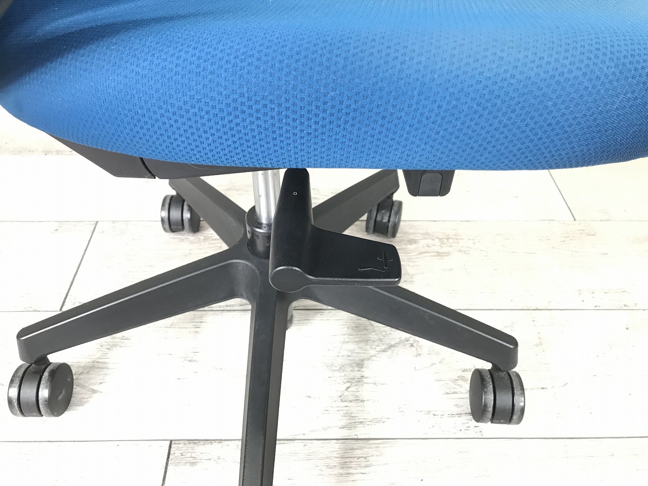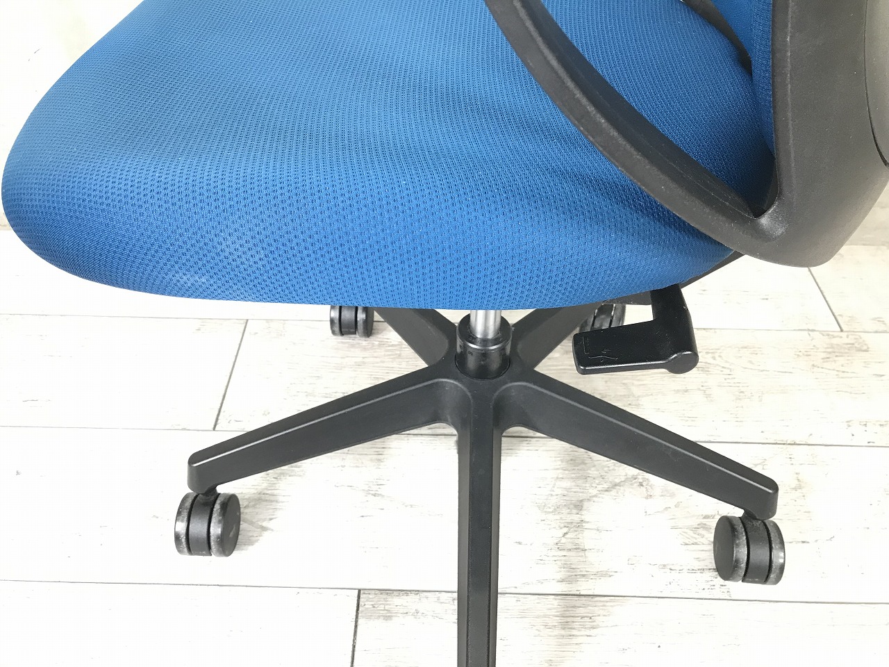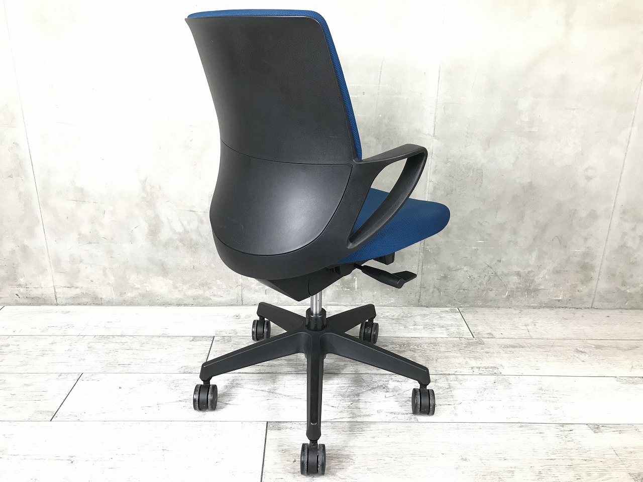 【デスクにスッキリ収納できるコンパクト設計!スマートデザインで使い勝手抜群!】■コクヨ(KOKUYO)製 ピコラ(picora)チェア 肘付き ローバック ■サークル肘 ■プルシアンブルー×ホワイトシェル×脚ブラック※背面日焼け有