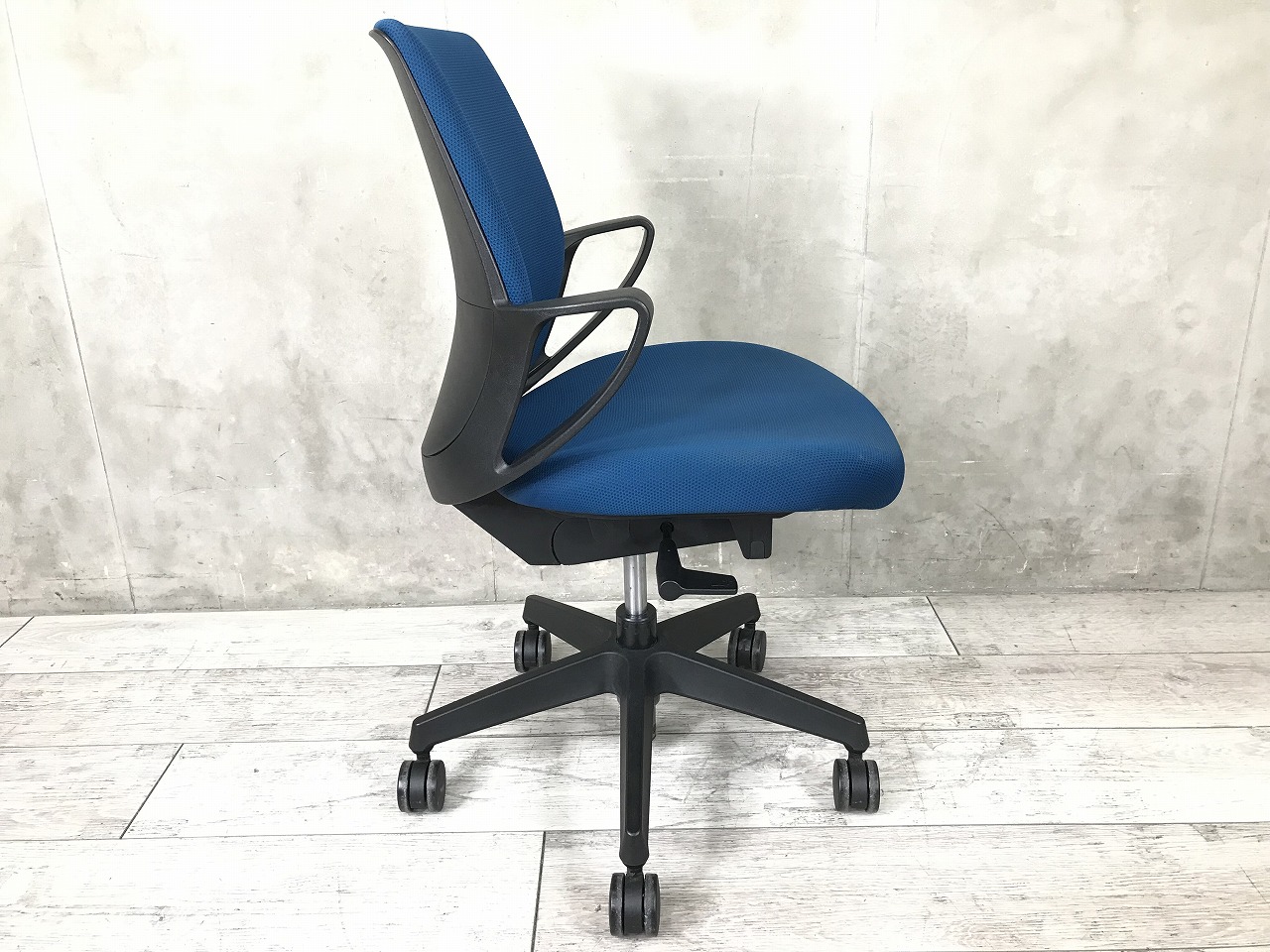 【デスクにスッキリ収納できるコンパクト設計!スマートなデザインで使い勝手が良し!】■コクヨ(KOKUYO)製 ピコラチェア(picora) 肘付き ローバック ■プルシアンブルー × ホワイトシェル 脚ブラック