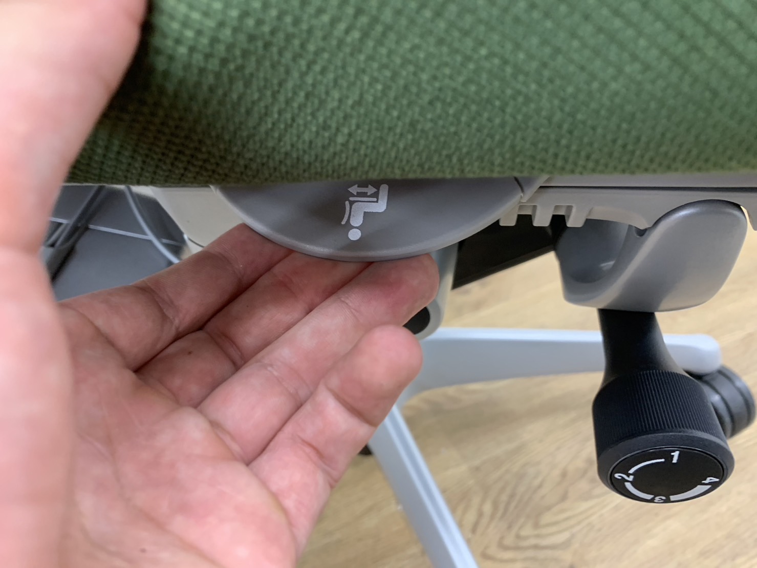 - ロッキングの強弱を調整するダイヤルがございます。体型に合わせてリクライニングの固さを座ったままで調整できます。