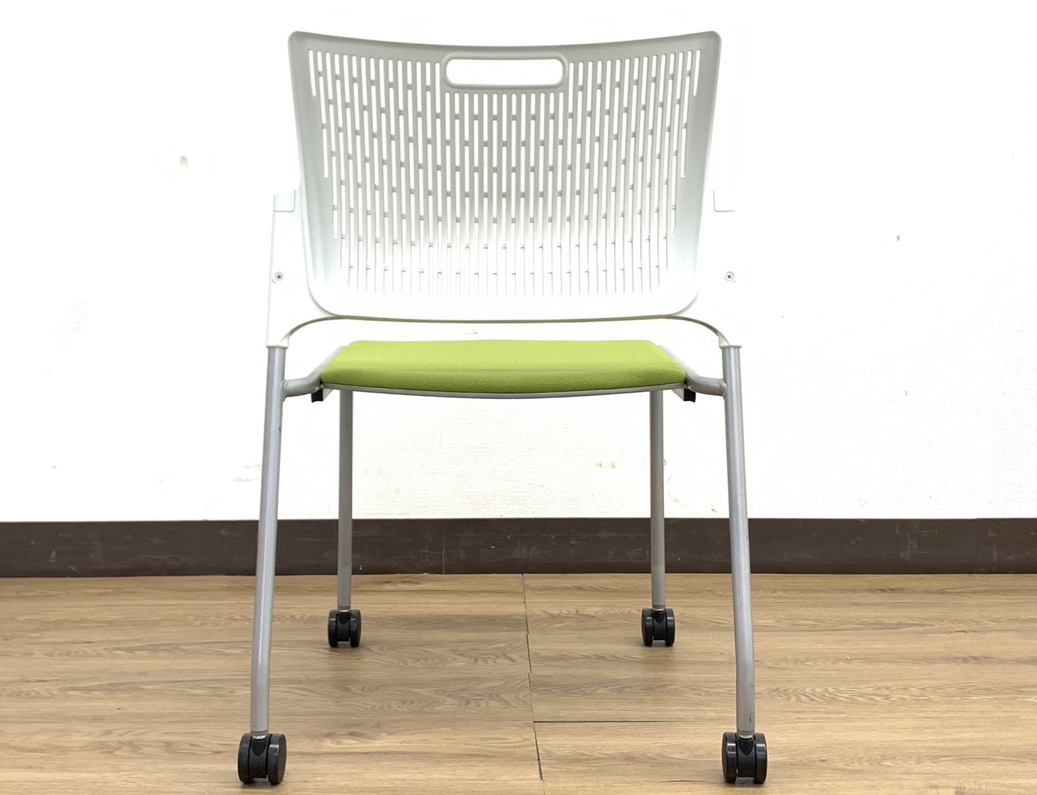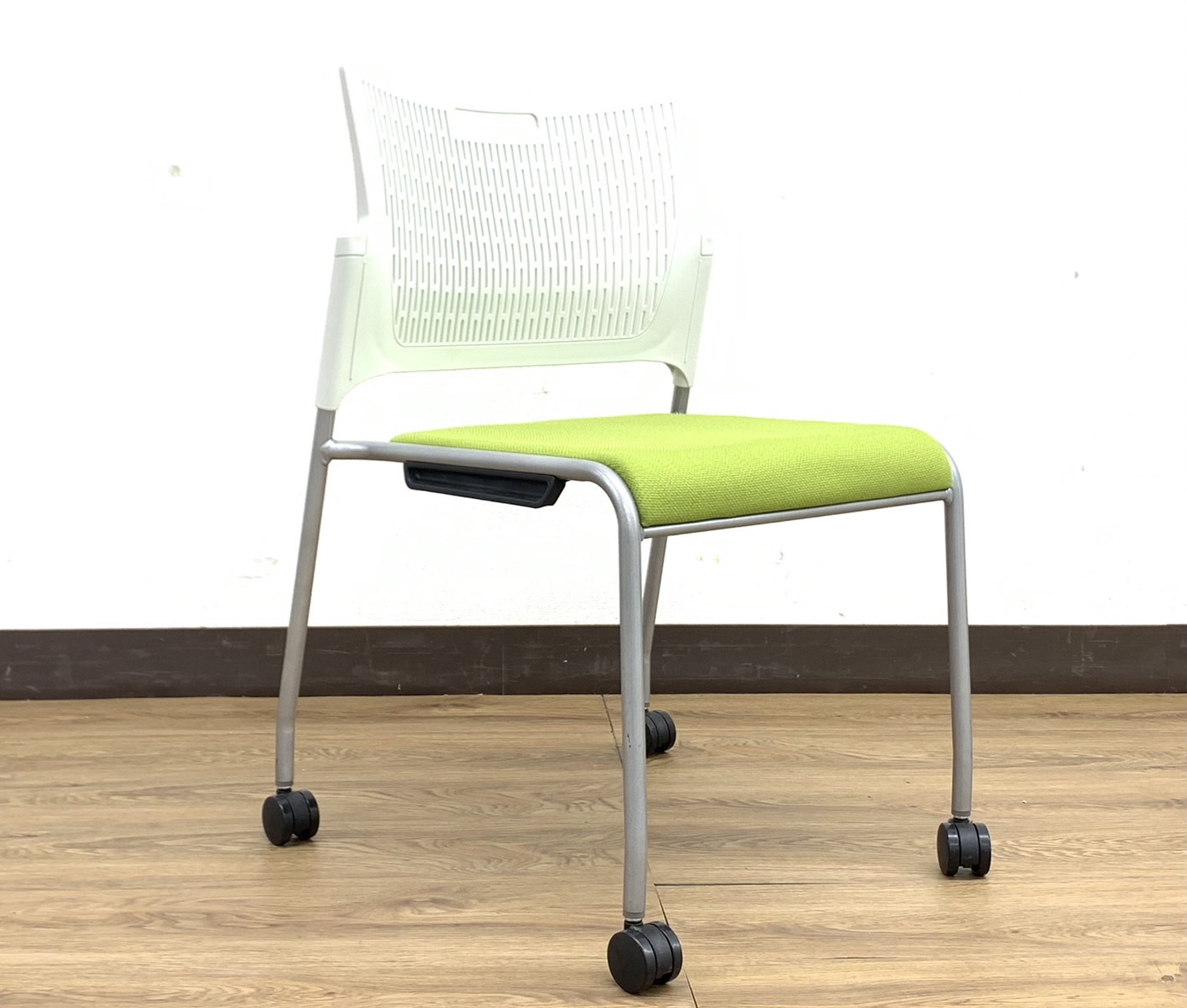 【ロット商品!】◇オカムラ(okamura) レーテシリーズ ◇グリーン 背もたれブラック樹脂 ◇キャスター付 スタッキングチェア ミーティングチェア 〈岐阜・愛知・三重・静岡・福井〉