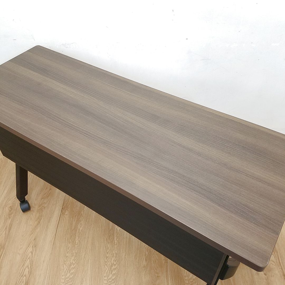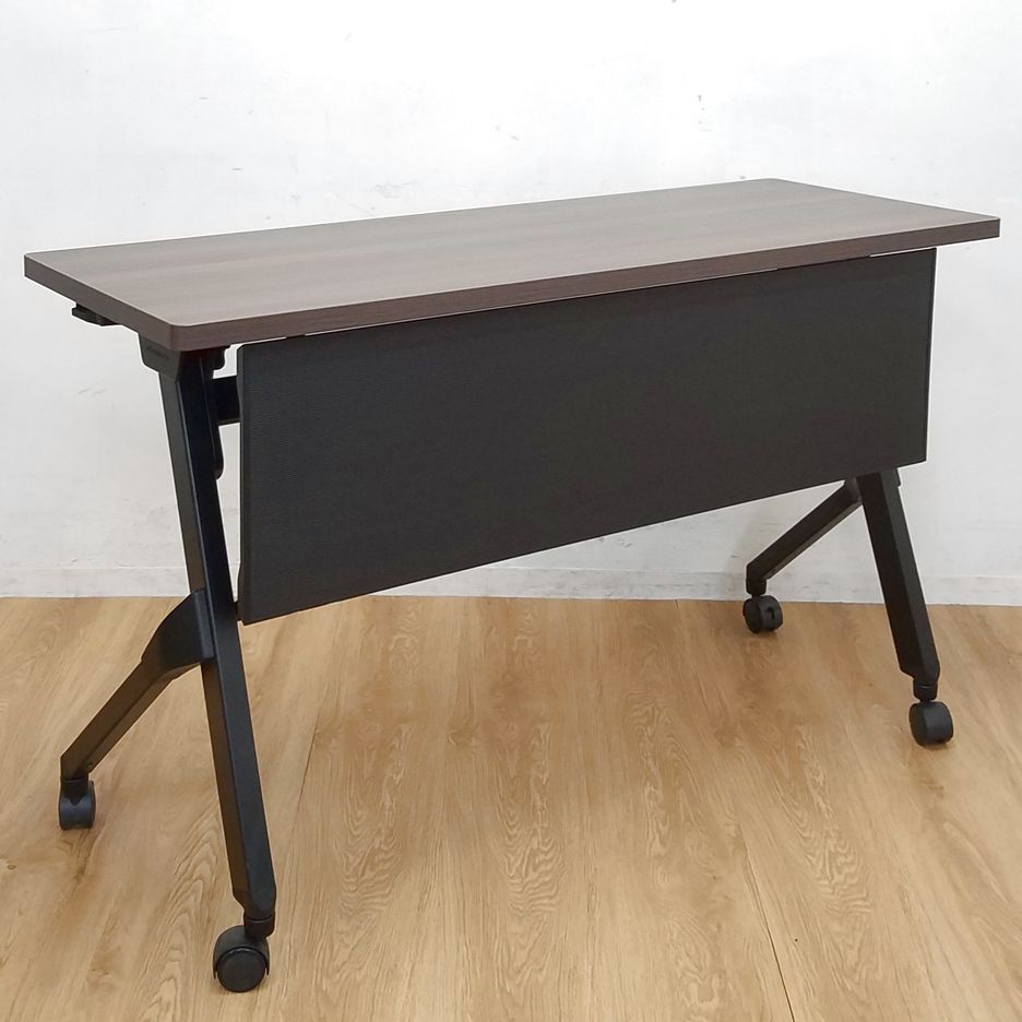 【6台限定!!】オカムラ製サイドスタックテーブル! 中古 テーブル コロナウイルス 飛沫防止 テレワーク セミナー W1200 幕板付き フラプター プライズウッドダーク- 大阪・堺店