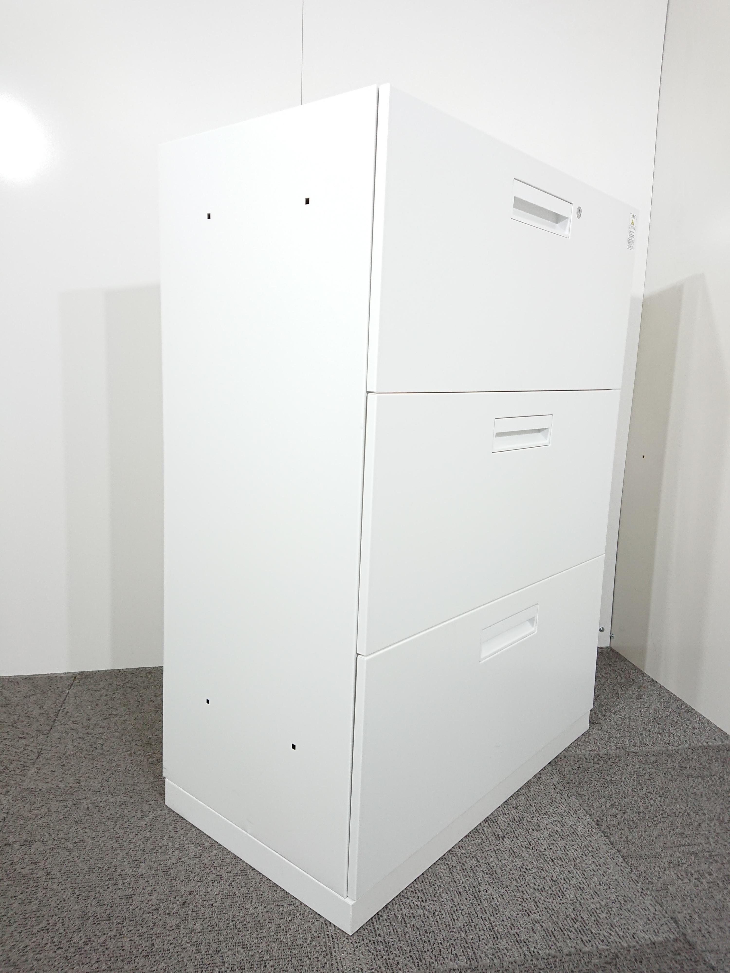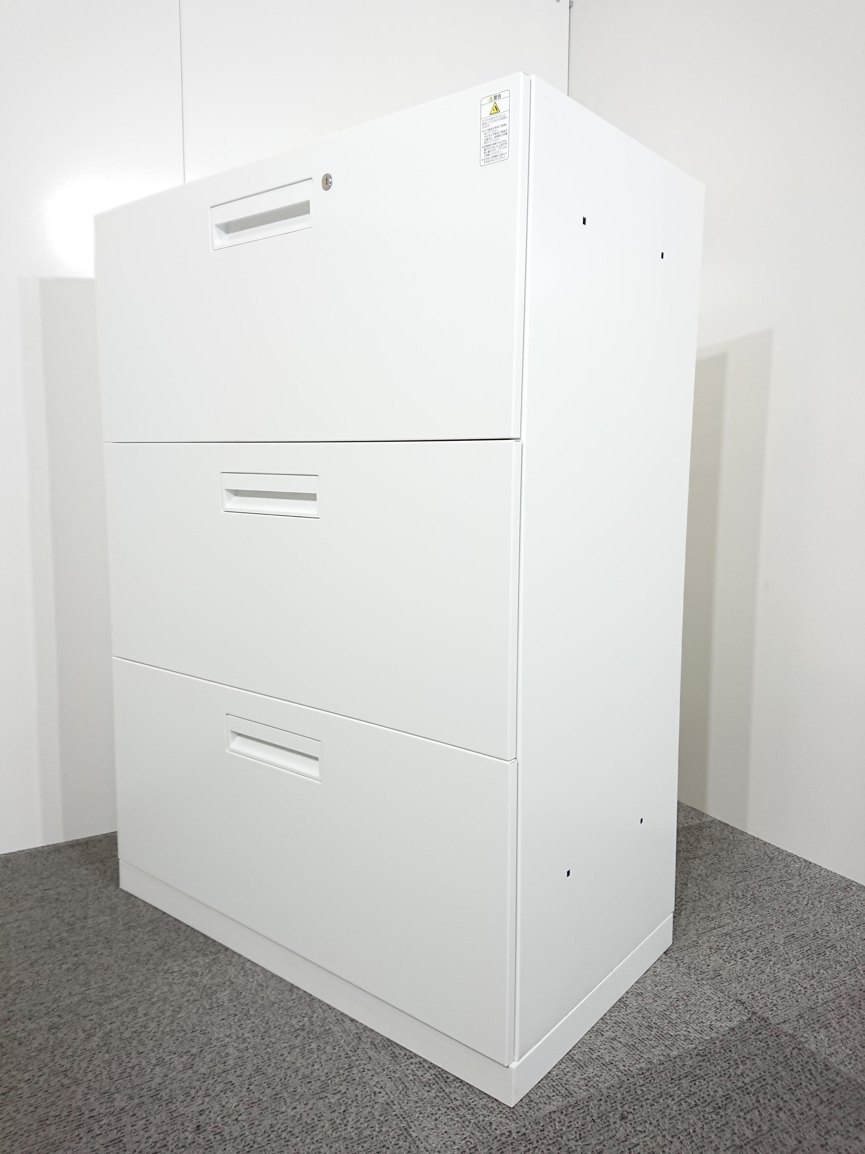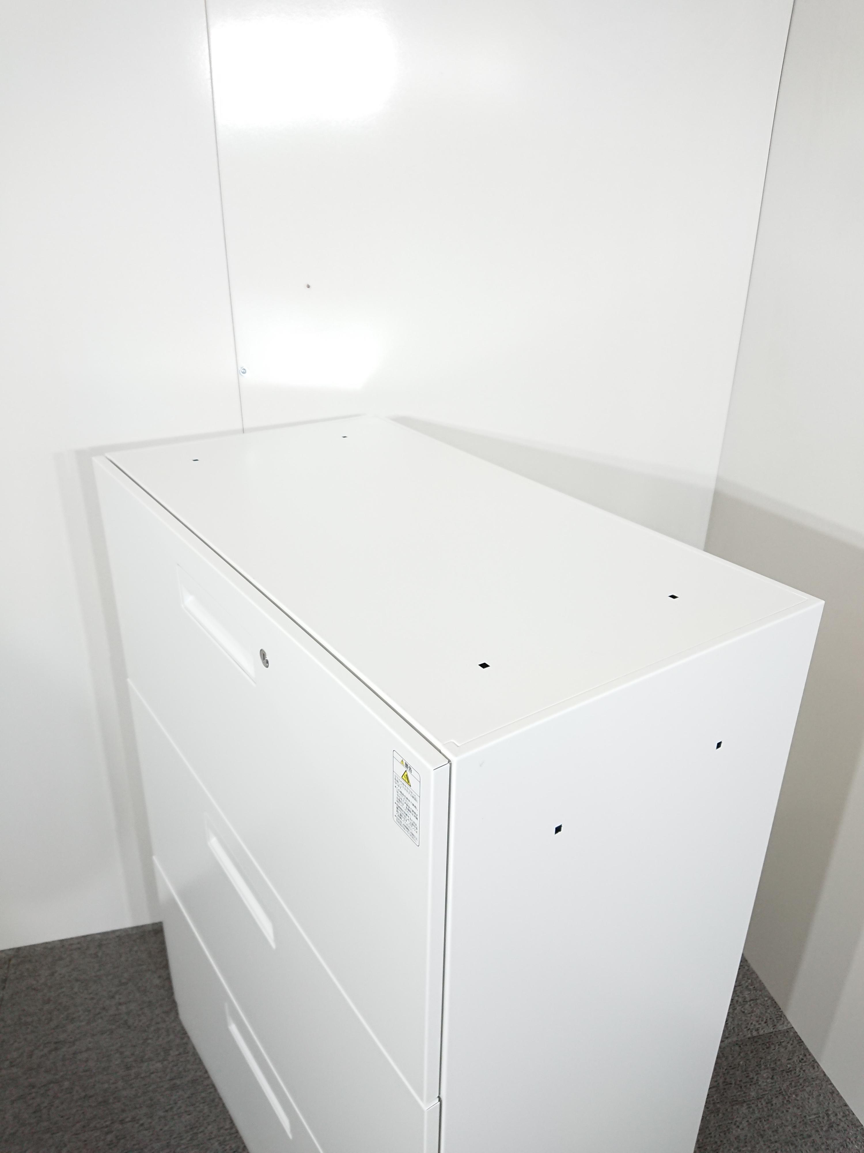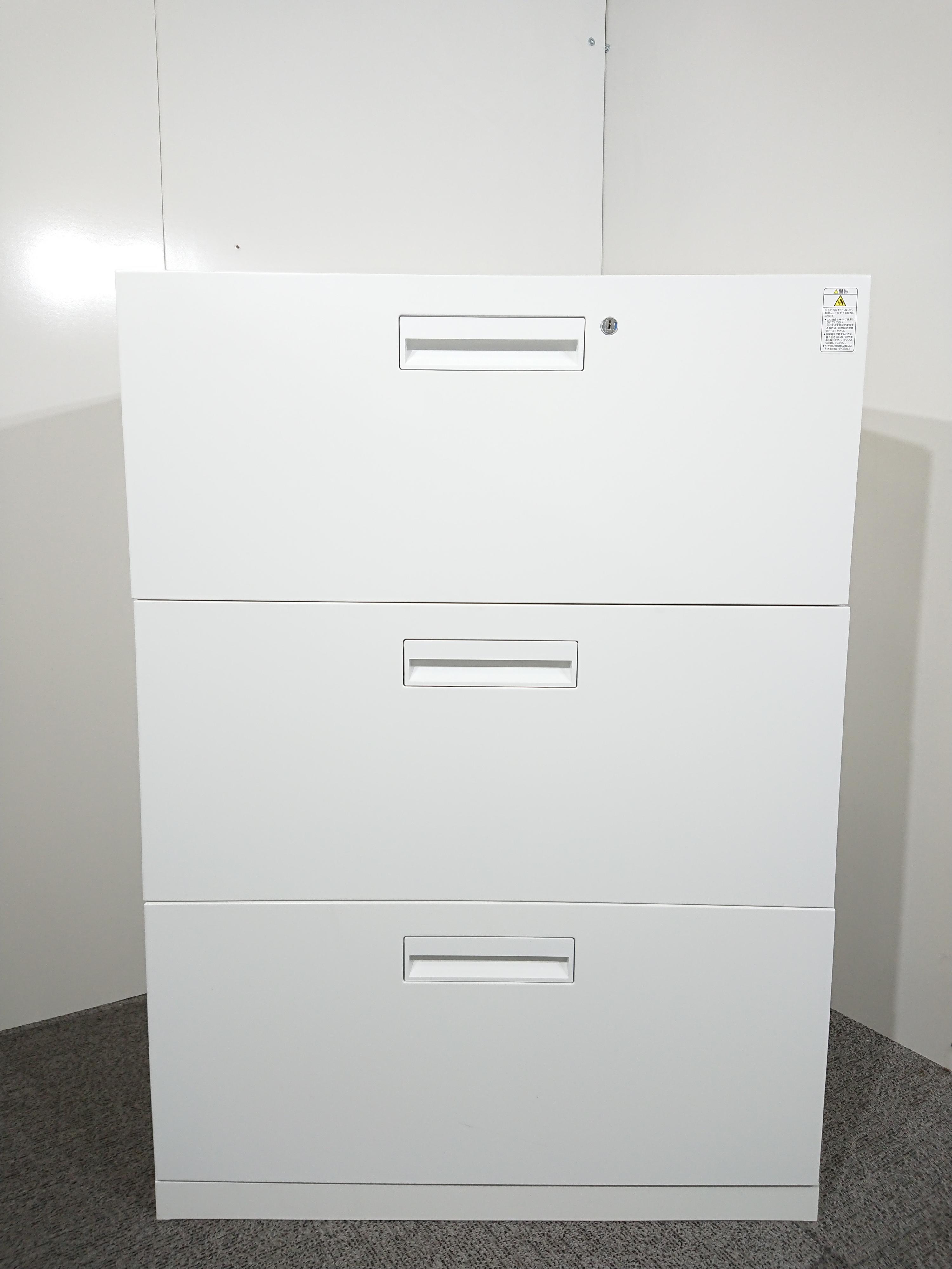 【4台入荷】【収納力抜群の3段ラテラル書庫!A4書類が大量に収納可能!】■コクヨ(KOKUYO)製 エディア(EDIA)シリーズ 3段ラテラル ローキャビネット ■天板/ベース付き ■ホワイト ■シリンダー錠