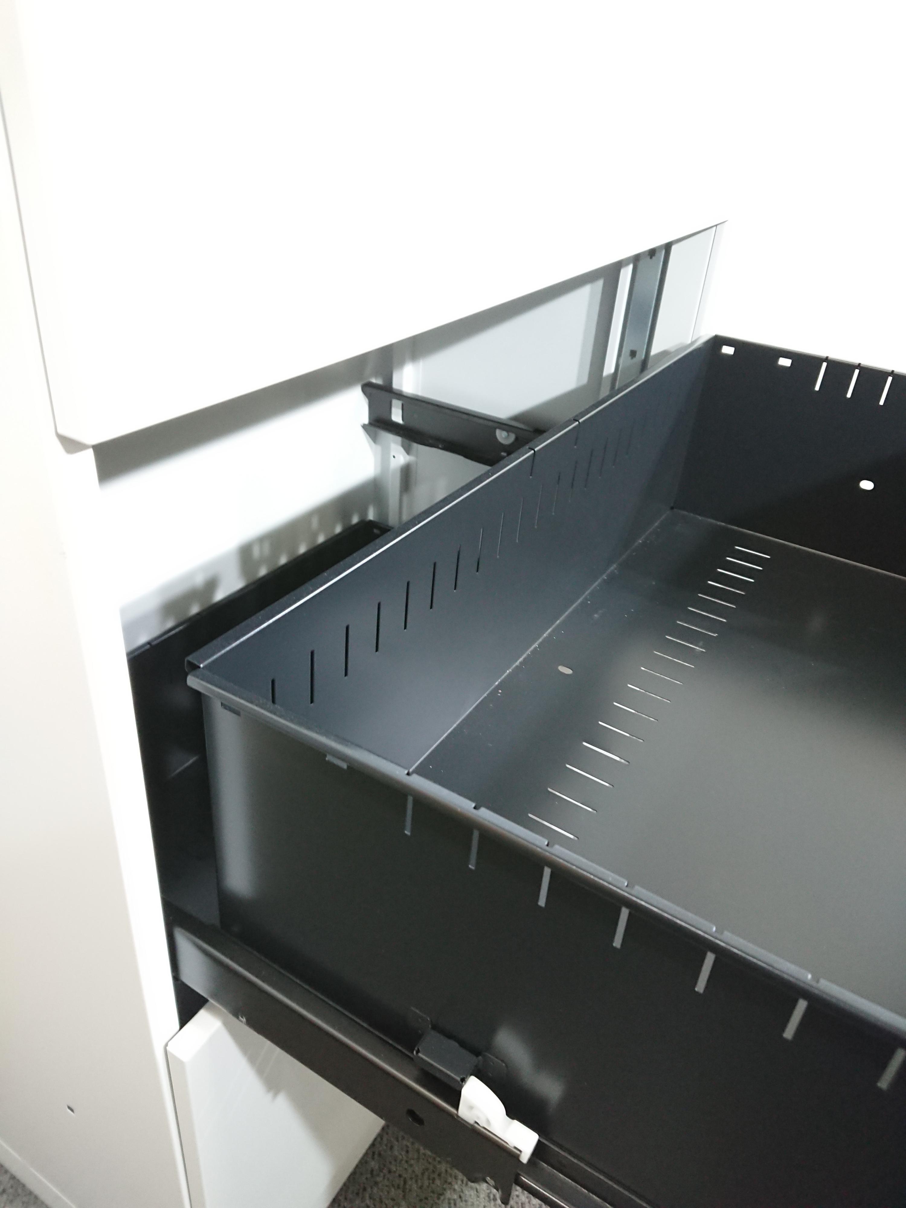 - 一部不具合ありそ引出の開閉不可、施錠不可、棚板無しといったの書庫の本来の効用を果たすための機能以外の一部が使用不可(例、扉、引出の開閉がしづらいなどがある。 )