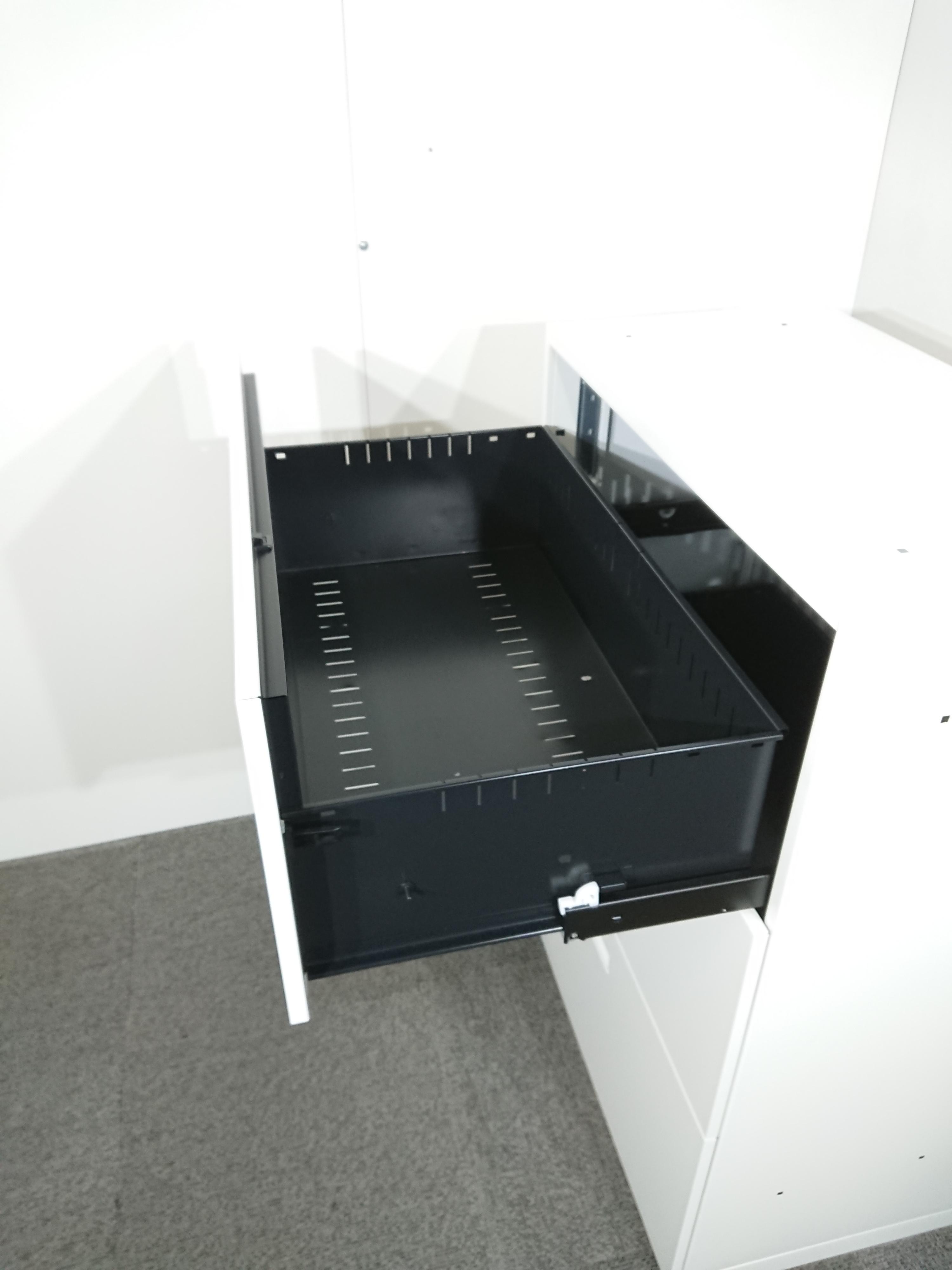 - 両開きタイプは扉が180度開き、通路の邪魔になりません。ラテラルタイプは引出しが限界まで出せ、出し入れ楽々。