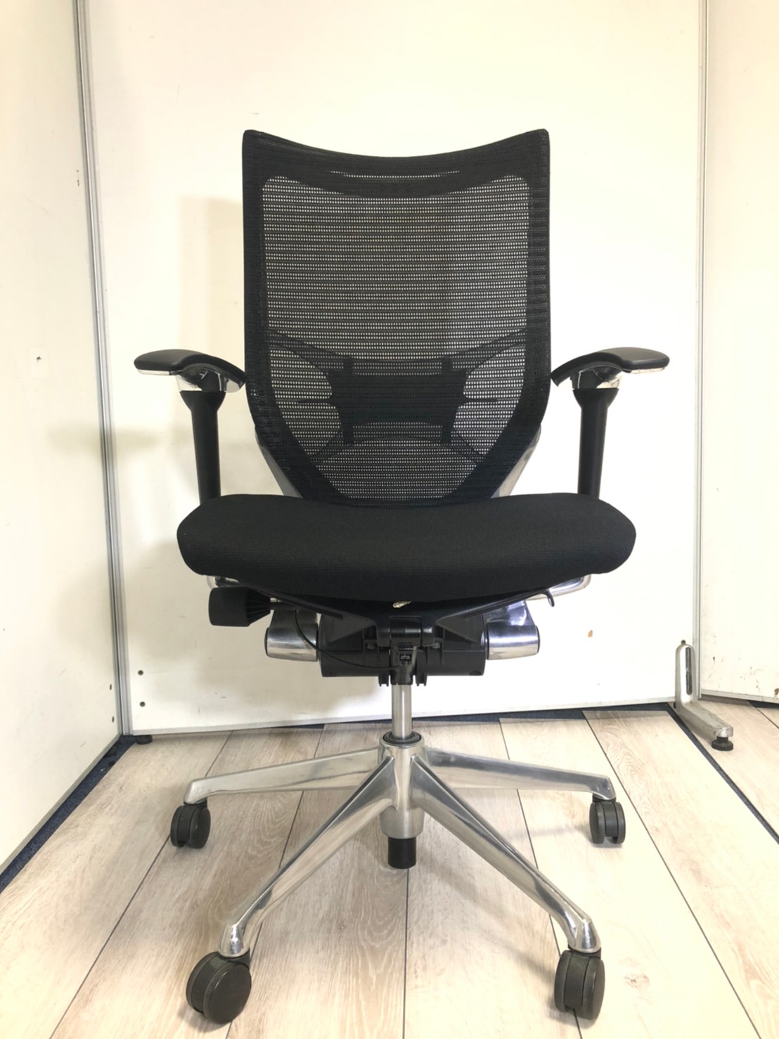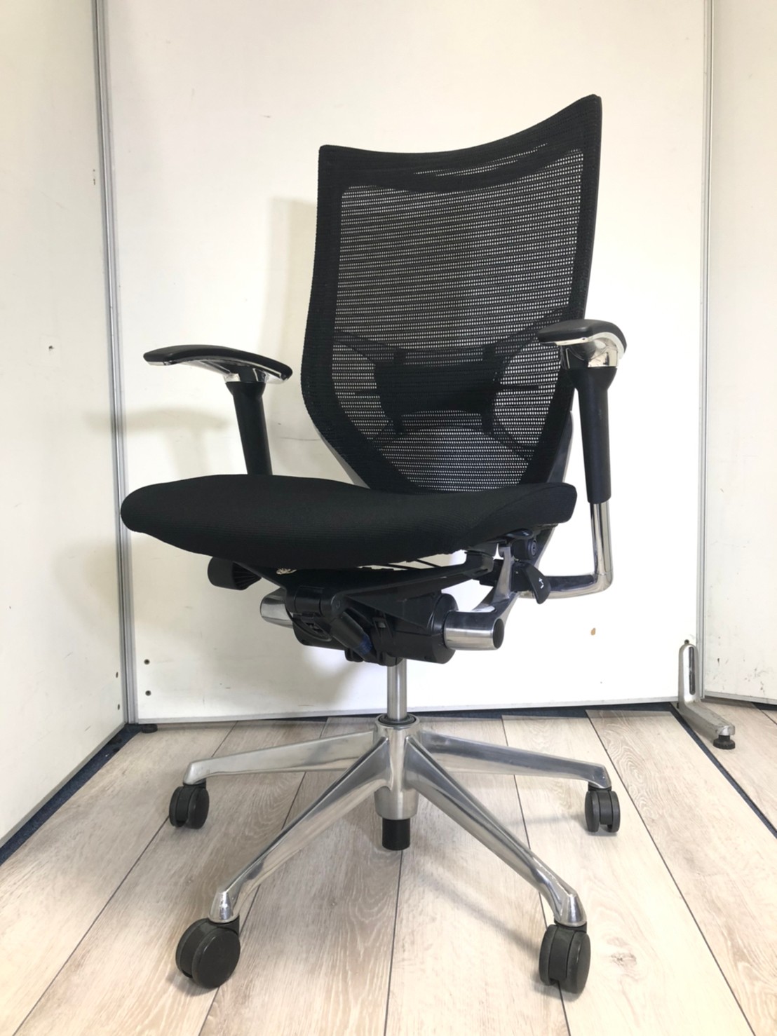 【長時間の着座でも疲れにくい!ベストなポジションが得られる先進設計!】■オカムラ バロンチェア 肘付 ブラック ハイバック シルバーフレーム ■良い椅子は腰を守る投資です!【Okamura Baron】