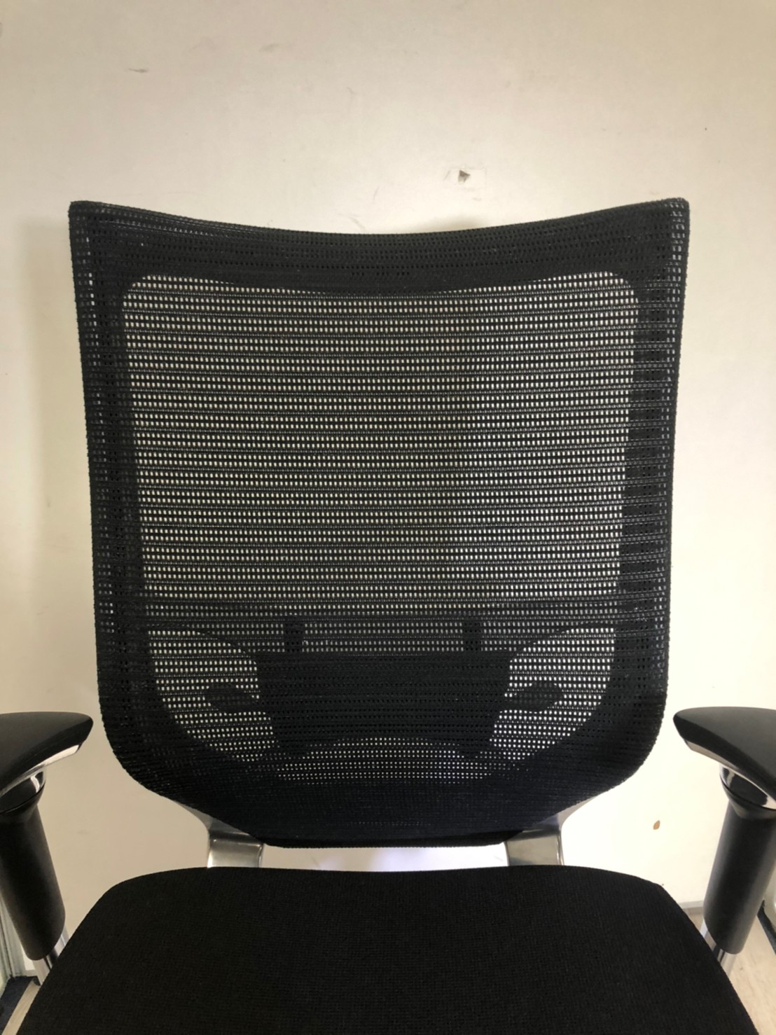 【オフィスの執務室、会議室におすすめ!】■オカムラ(okamura)製 バロン(Baron)チェア 肘付き ハイバック ■背・座面メッシュ ■可動肘 ■ヘッドレスト付き ■ブラック【硬めの座面が大人気!国産メッシュチェアの代表格!】