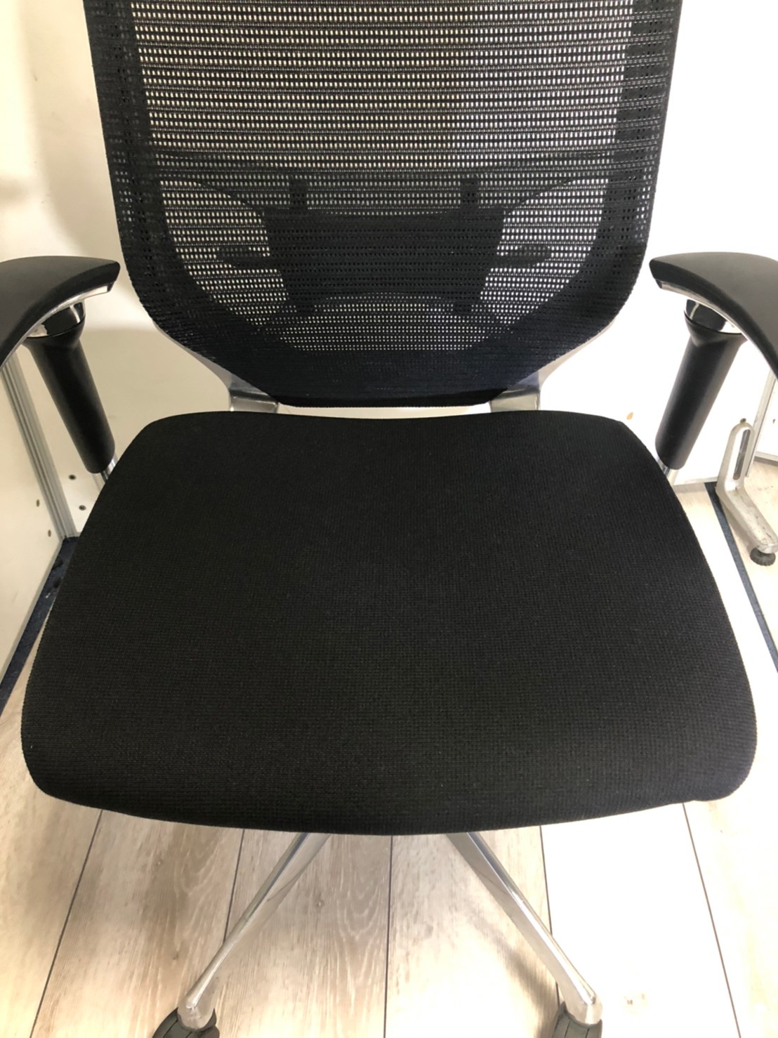 もちろん座り心地もコンテッサの直系ですから快適です。座面の素材はクッションとメッシュの2タイプあります。私、個人的には座面の中心部分でも外側でもテンションが変わらないクッション素材が、足を閉じても開いても快適なので推しです!"