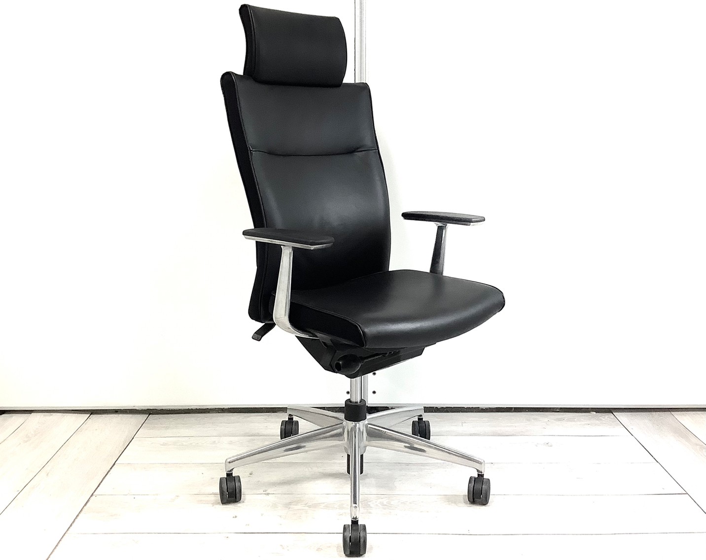 【見た目だけでなく機能性も充実!応接室にもおすすめ!】■コクヨ(KOKUYO)製 プントチェア(PUNTO) 肘付き ハイバック ■レザー張地(合皮) ■サークル肘・エアランバーサポート付 ■ブラック 【ワンランク上の快適な座り心地】