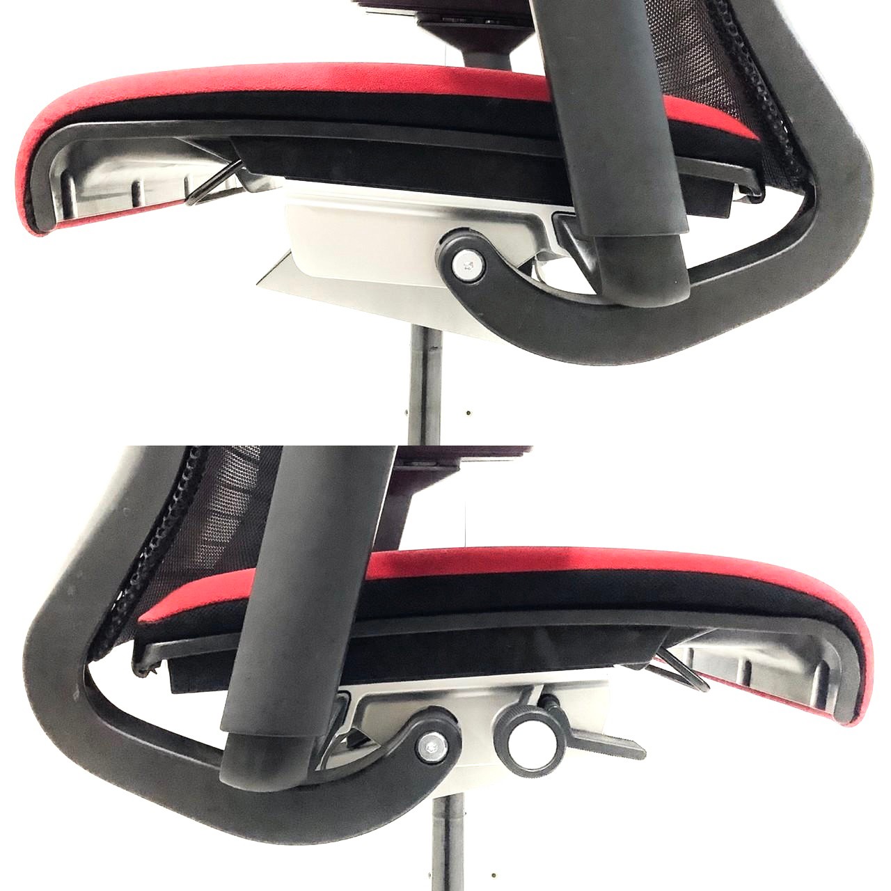 快適な座り心地に不可欠な調節機能である、上下昇降、座面の奥行き調整、リクライニングなどを備えており、操作もわかりやすく好評です。 特に、座面の奥行きは、座面下の左右に通った細いバーで調整でき、座ったままで軽やかに滑るように調整が可能です。 価格面では、新品では高めですが、中古は流通も多く、定価の3割前後の価格で高級チェアの座り心地を手に入れることができます!