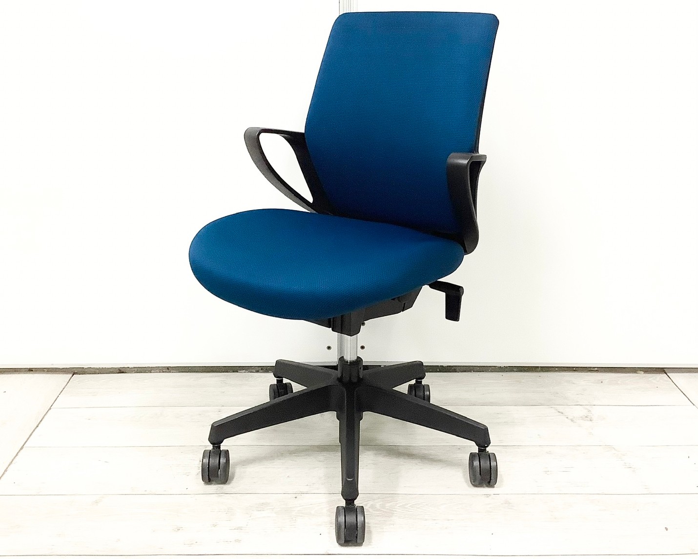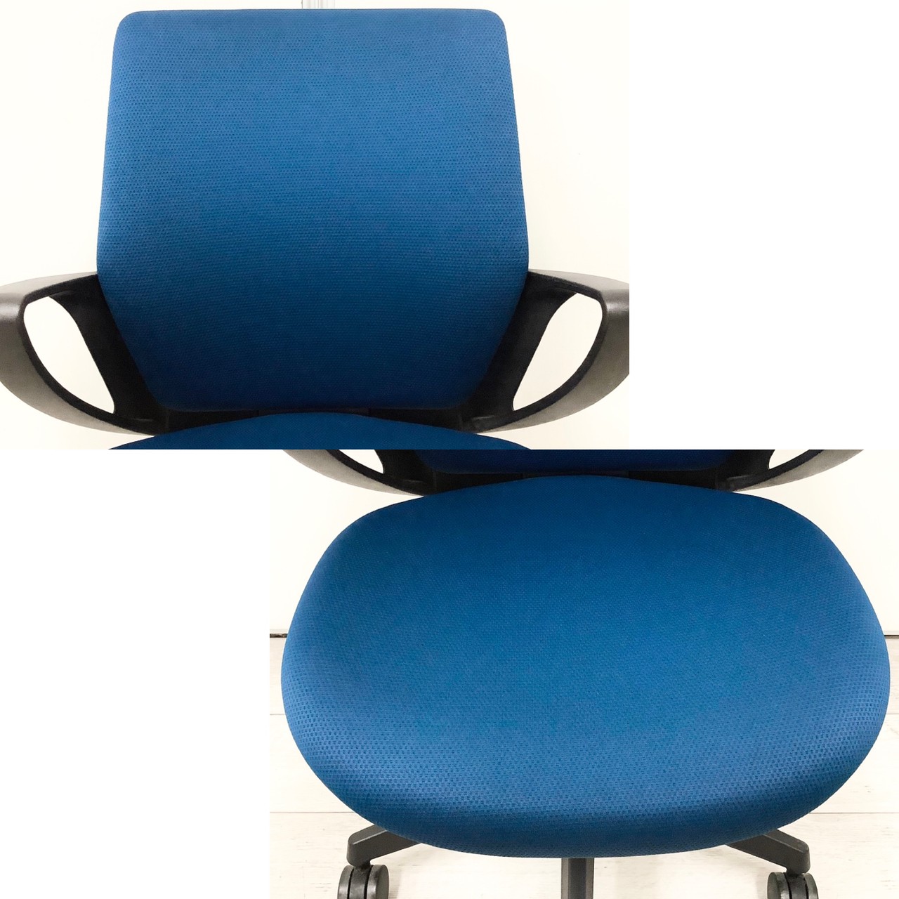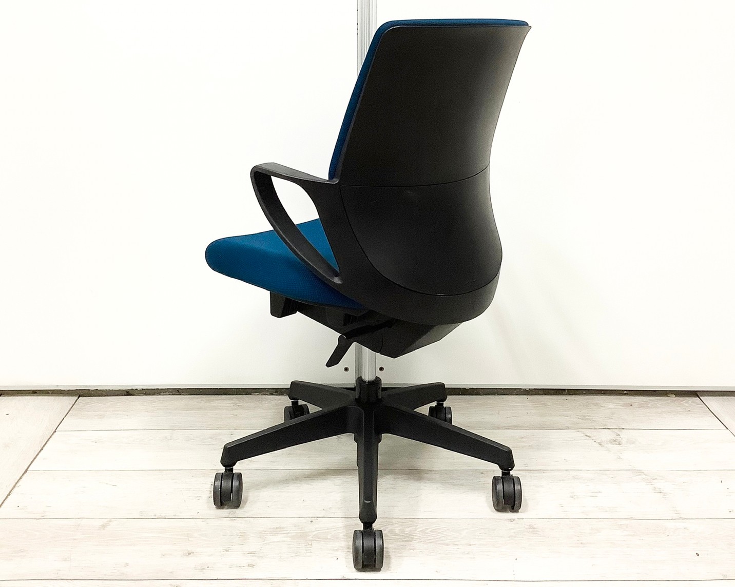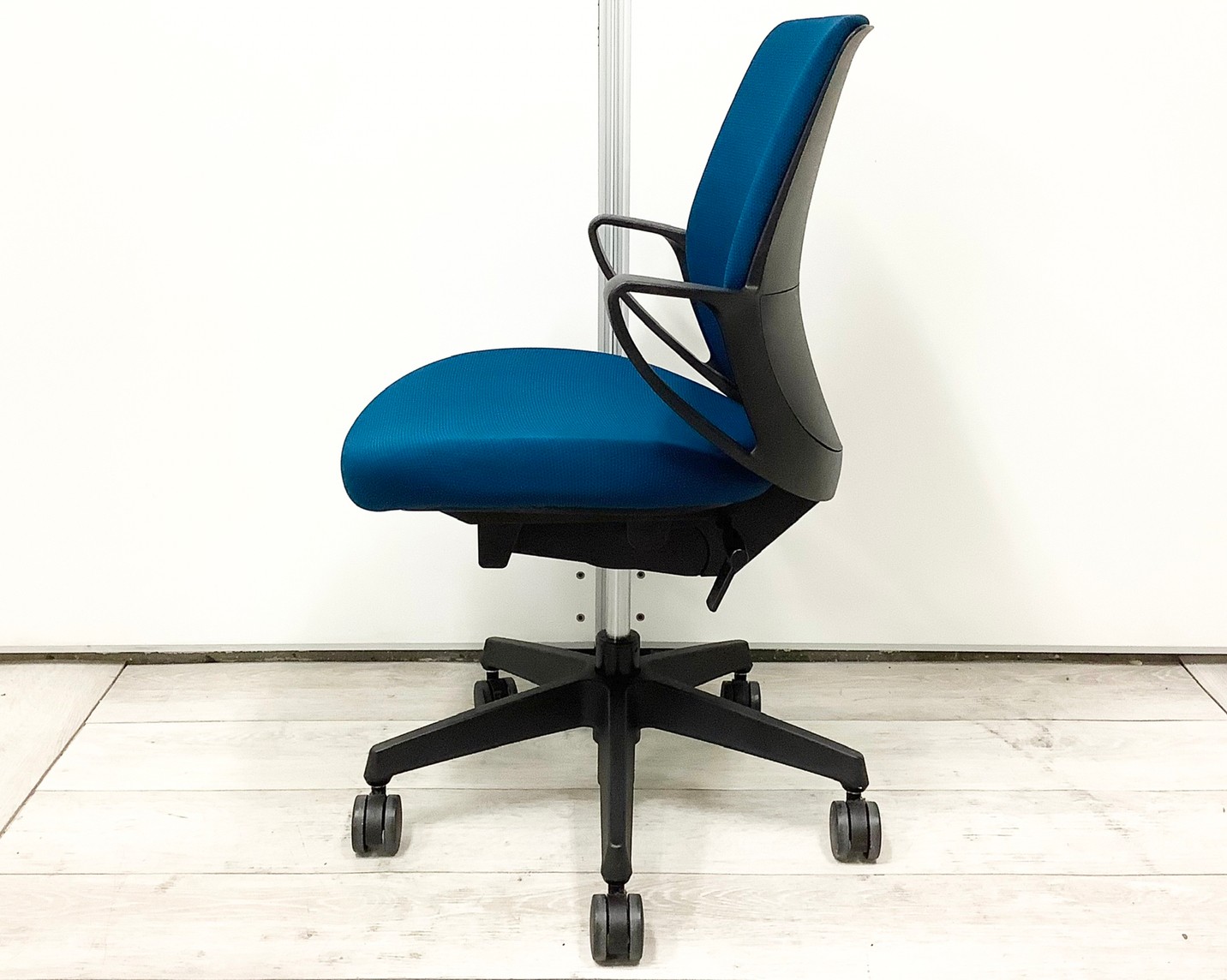 【デスクにスッキリ収納できるコンパクト設計!スマートデザインで使い勝手抜群!】■コクヨ(KOKUYO)製 ピコラ(picora)チェア 肘付き ローバック ■サークル肘 ■プルシアンブルー×ホワイトシェル×脚ブラック※背面日焼け有
