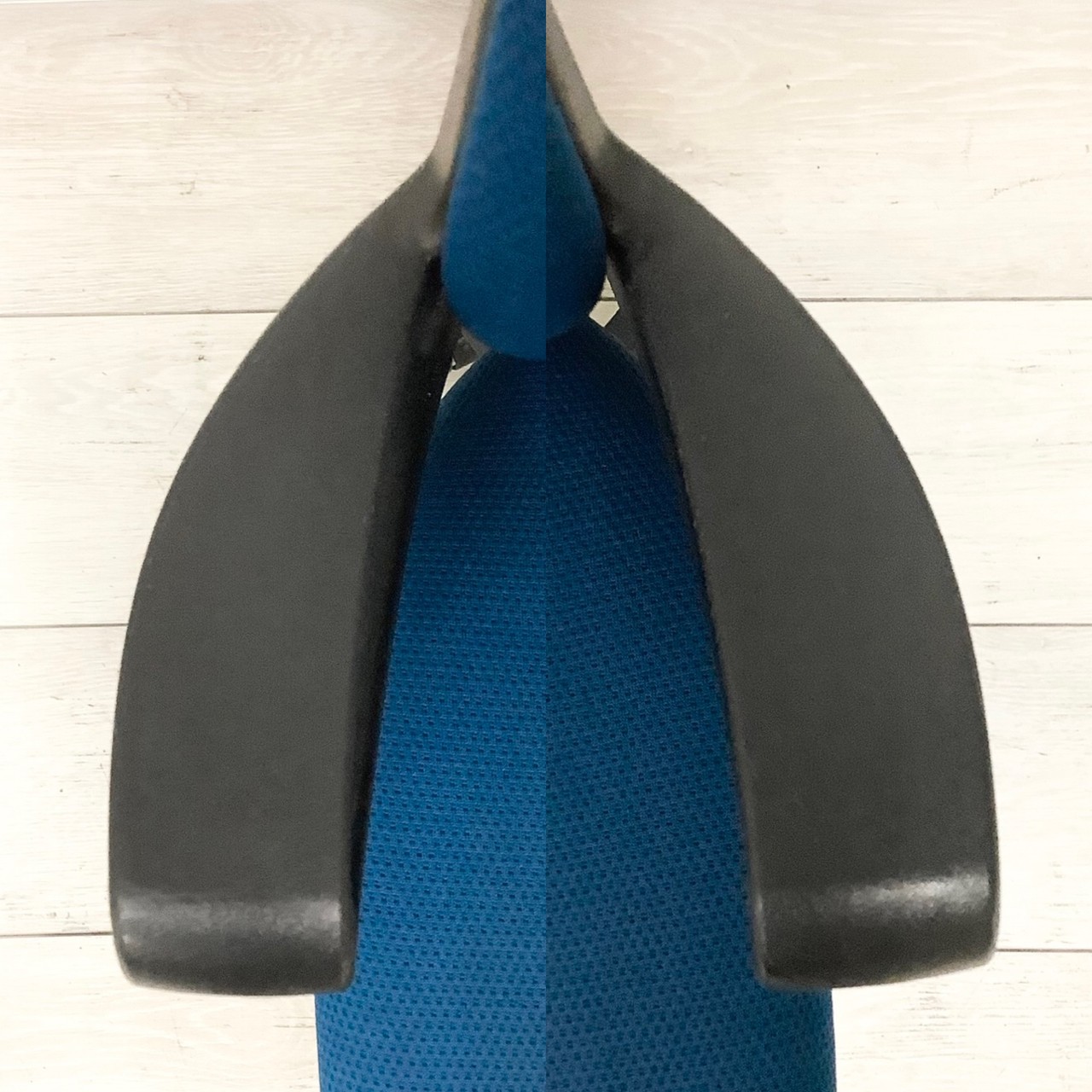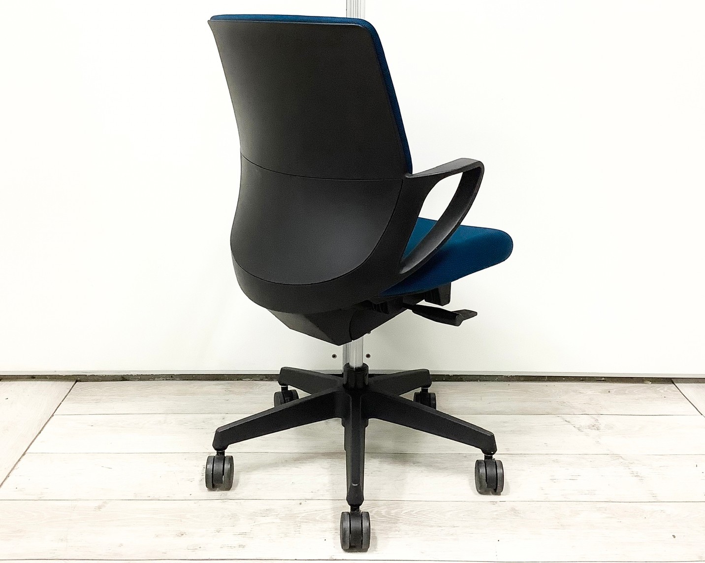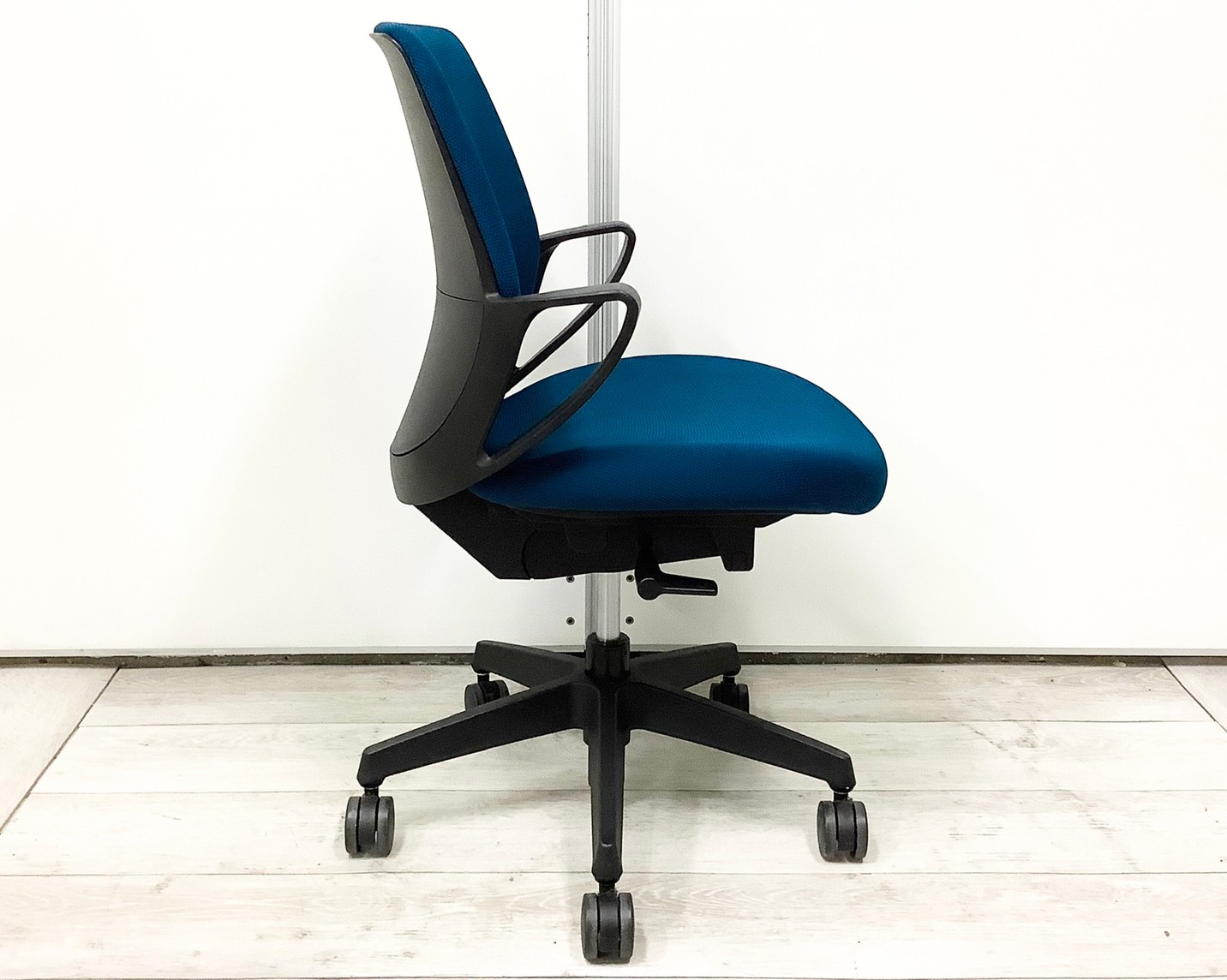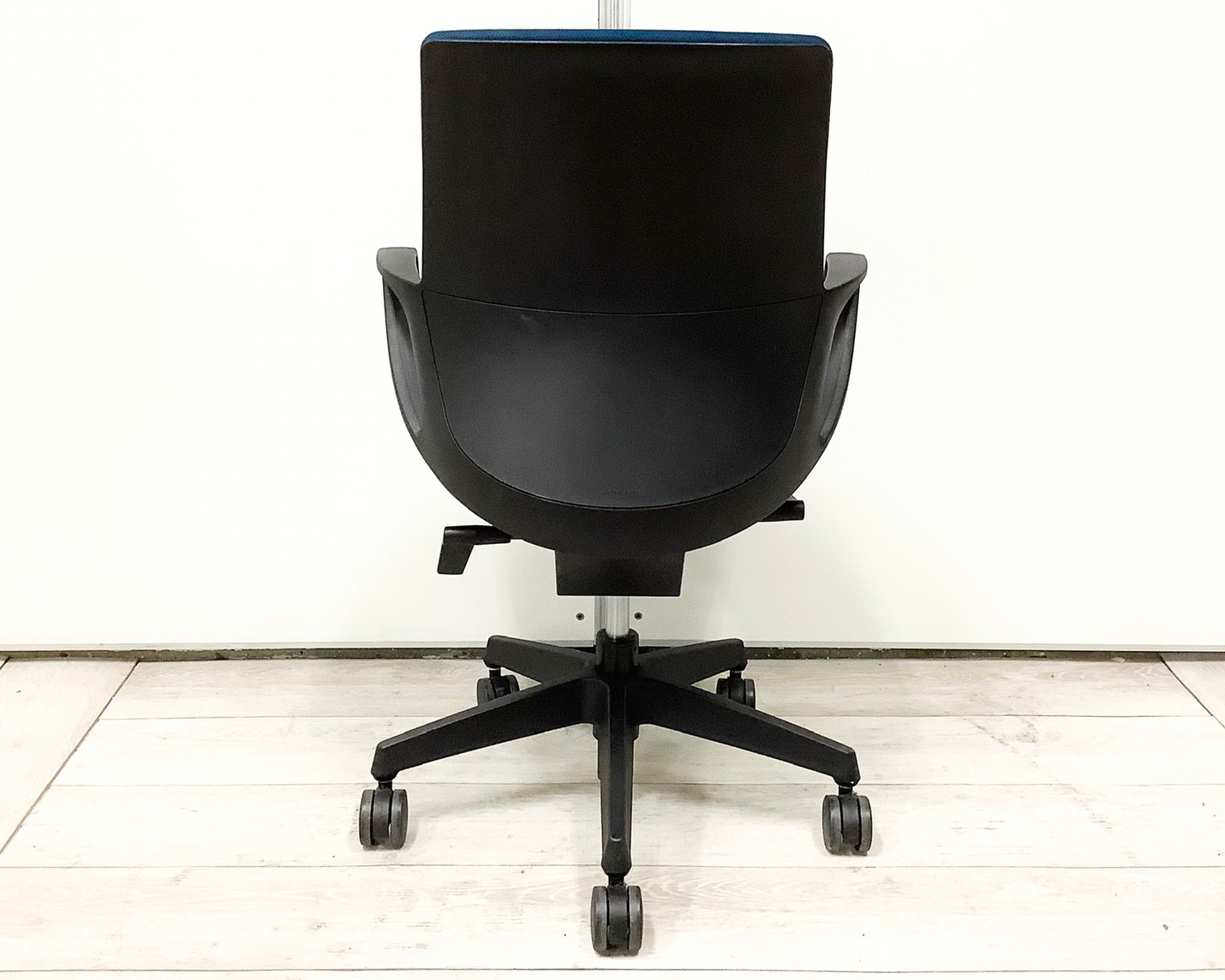 【デスクにスッキリ収納できるコンパクト設計!スマートデザインで使い勝手抜群!】■コクヨ(KOKUYO)製 ピコラ(picora)チェア 肘付き ローバック ■サークル肘 ■プルシアンブルー×ホワイトシェル×脚ブラック※背面日焼け有