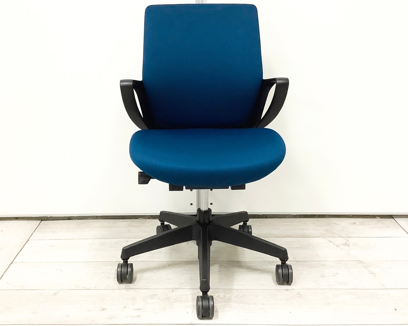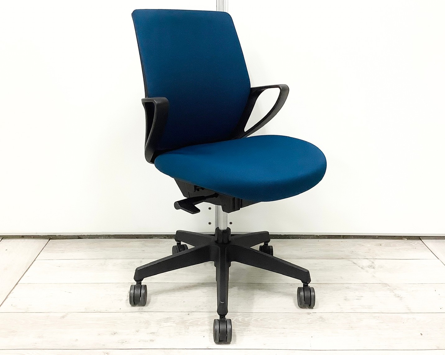 【デスクにスッキリ収納できるコンパクト設計!スマートなデザインで使い勝手が良し!】■コクヨ(KOKUYO)製 ピコラチェア(picora) 肘付き ローバック ■プルシアンブルー × ホワイトシェル 脚ブラック