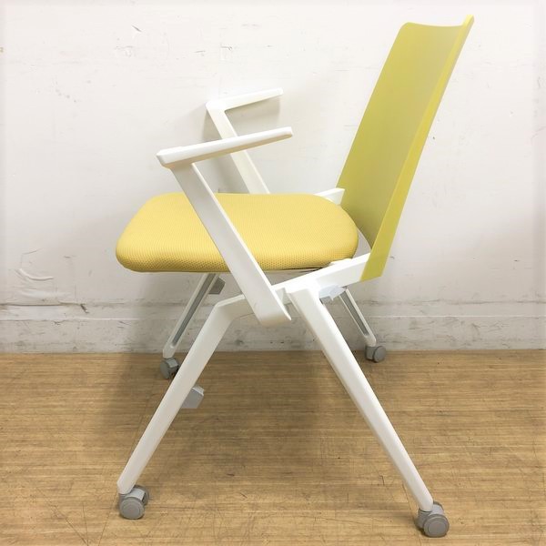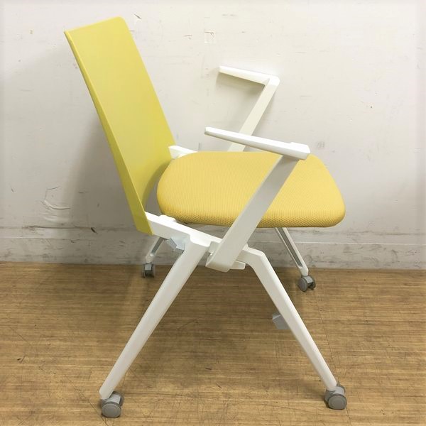 【在庫入替価格】★GOOD DESIGN★iF DESIGN AWARD 202★コクヨよりリリース マルチスタッキングチェアー スタッカ(STACKA) カラー:オリーブイエロー 肘付きキャスタータイプ- 名古屋千種店