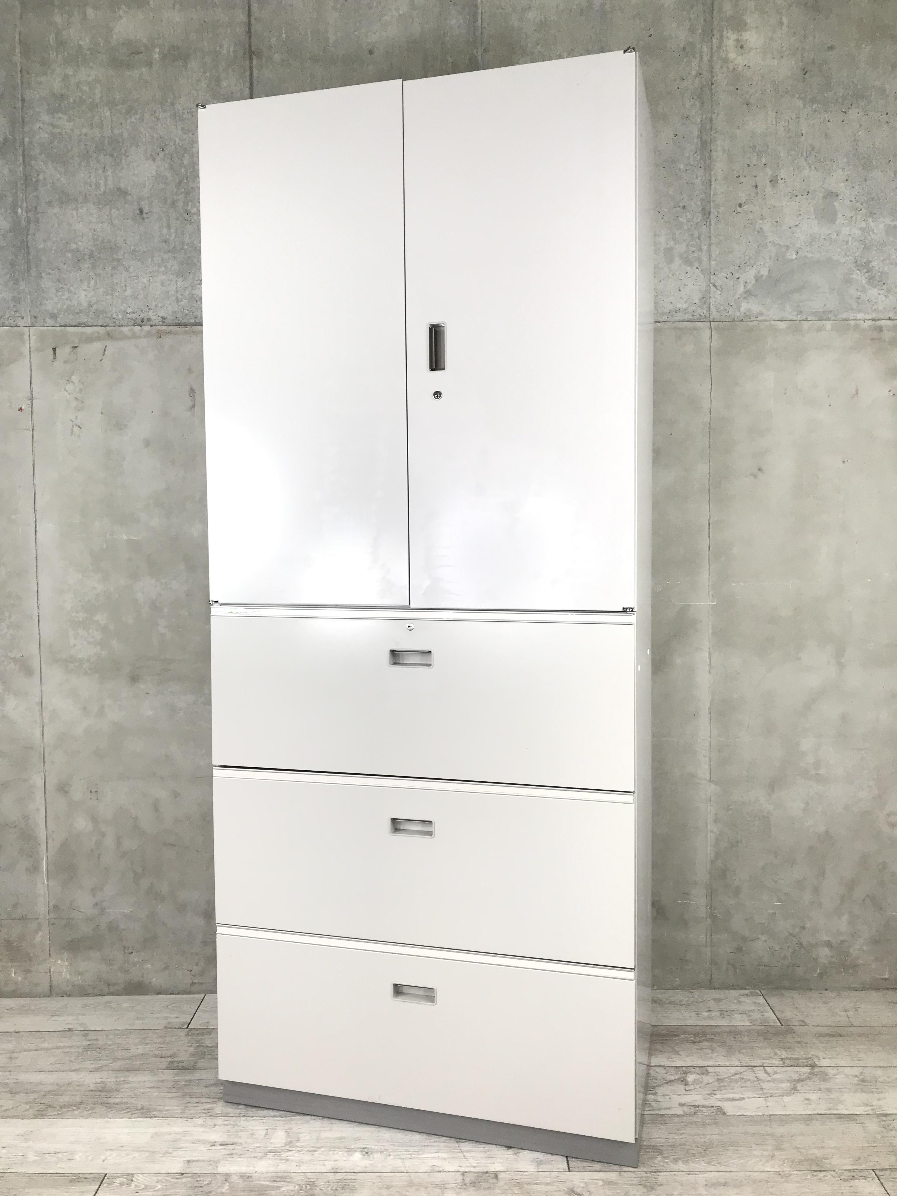 【倉庫在庫品】【これ1台で書類整理の問題が解決!上下で6段分の大容量収納!】■イトーキ (ITOKI)製 シンライン ハイキャビネット 両開き+3段ラテラル 書庫セット ■グレー ■シリンダー錠