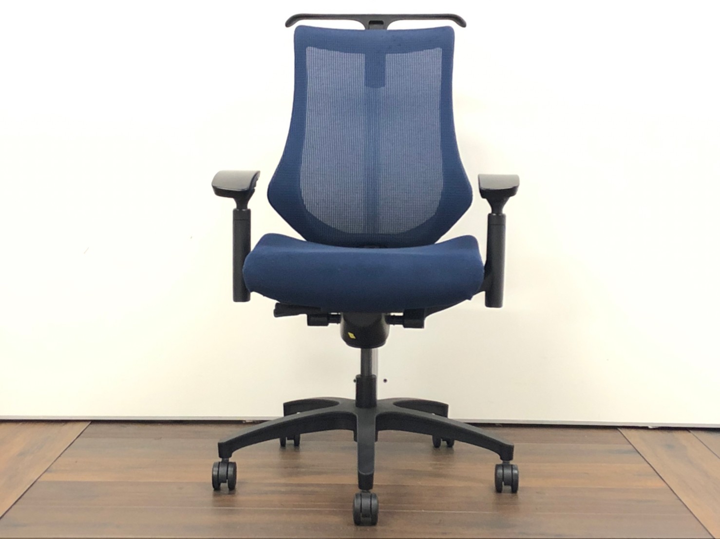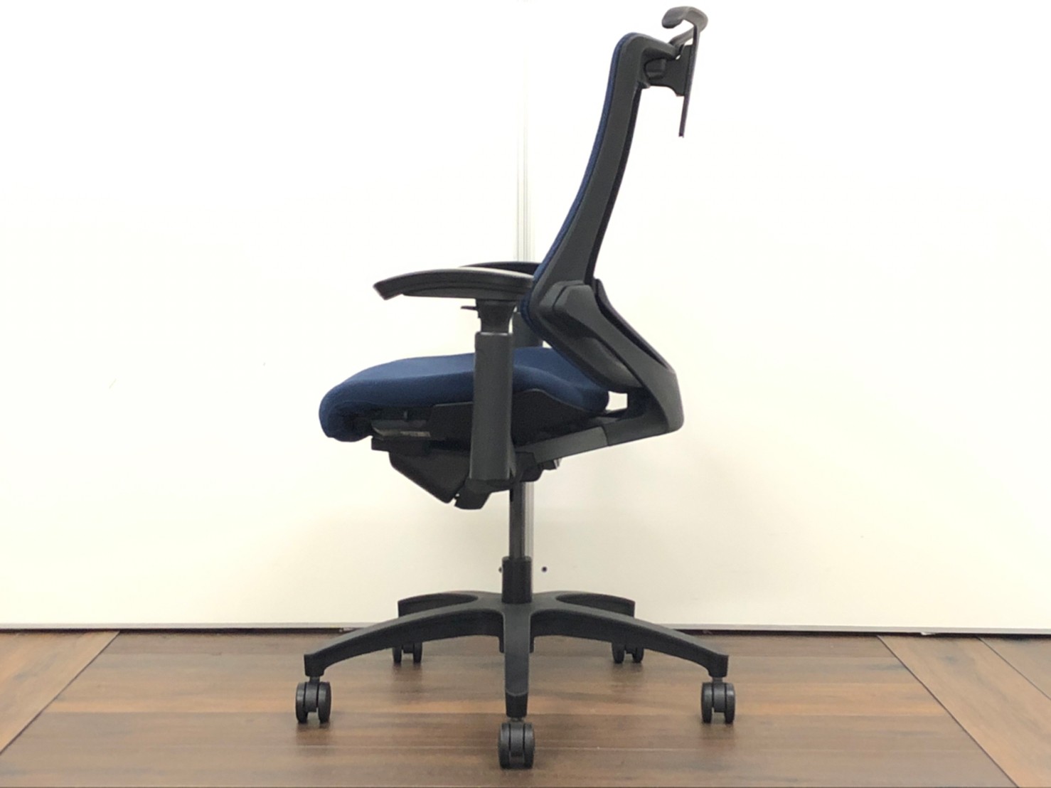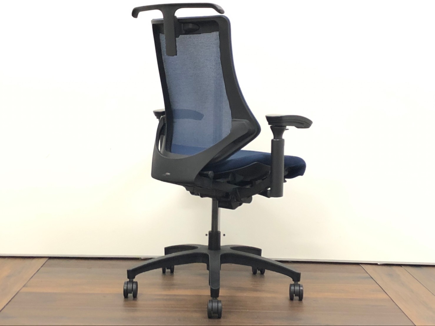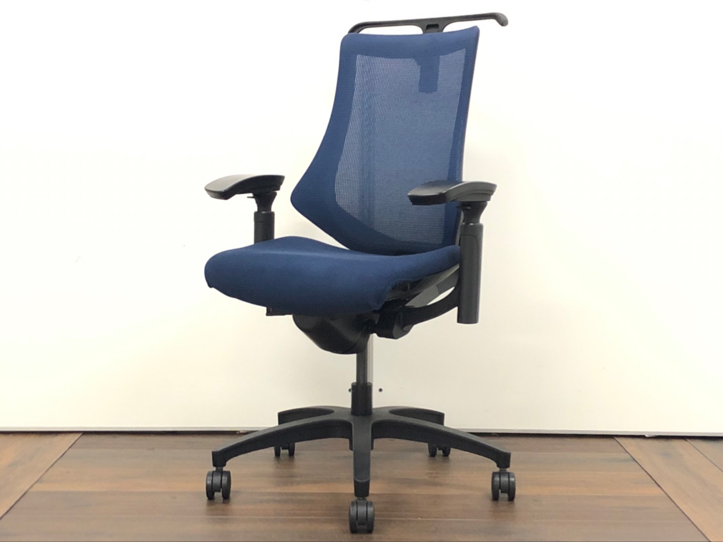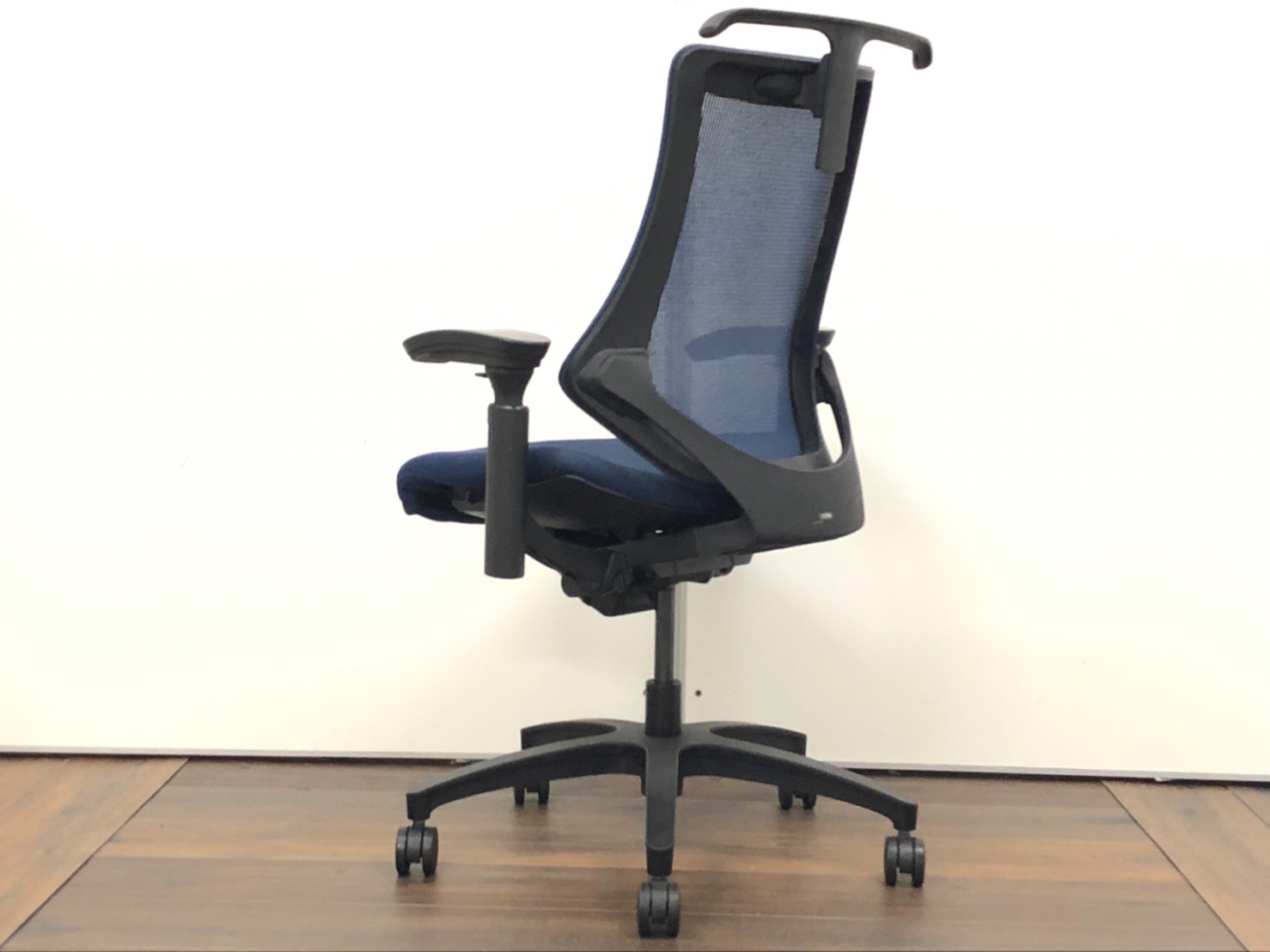 【最先端のデザインに快適な座り心地!】■イトーキ製 エフチェア 可動肘付 ネイビーブルー ■三次元フォルムが腰にフィット!【在庫入替セール品(本在庫限定価格)】