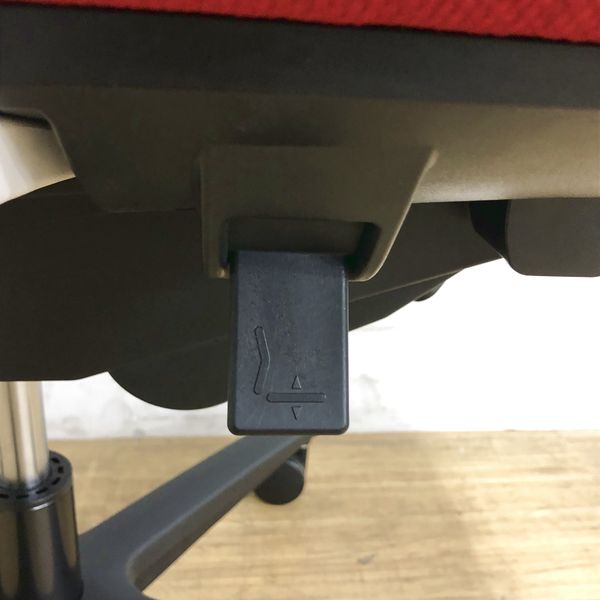 (ファブリック) - レバーを上下させることで、内蔵されたランバーサポートプレートの押し出し量を2段階(15㎜)切り替えることができます。