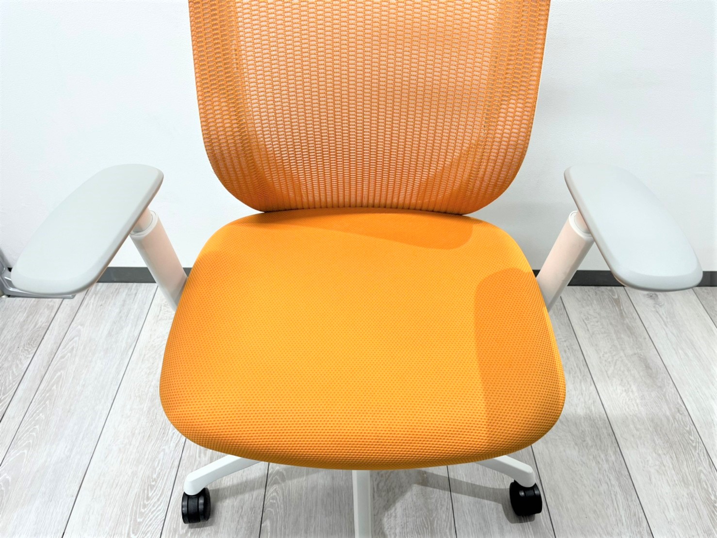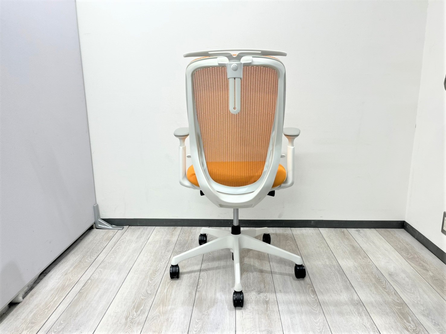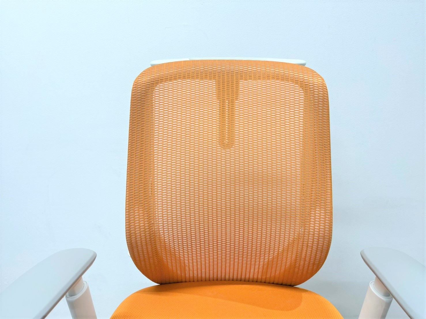 【在庫入替セール品!】【背のカーブを変えられる新感覚のオフィスシーティング!】■オカムラ シルフィーチェア 可動肘付 オレンジ ハンガー付 ホワイトフレーム ■新感覚のオフィスシーティング!【Okamrua Sylphy】