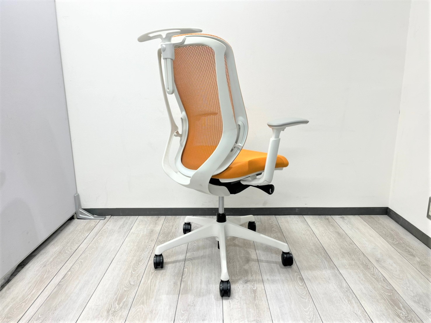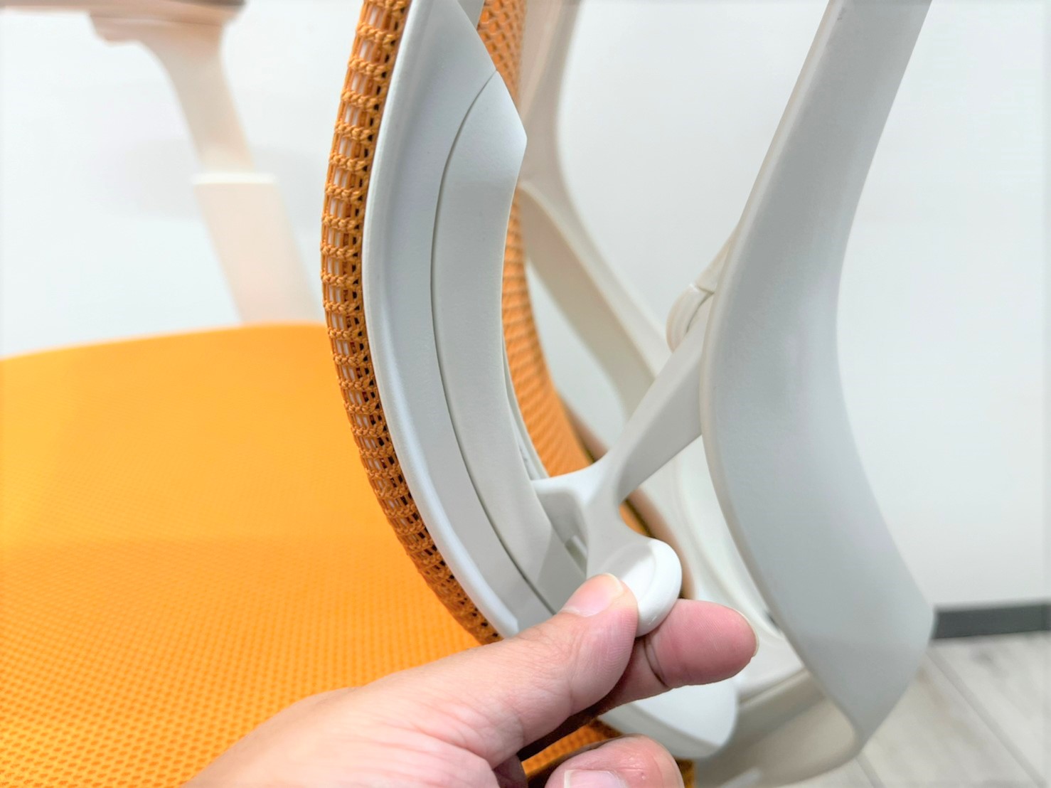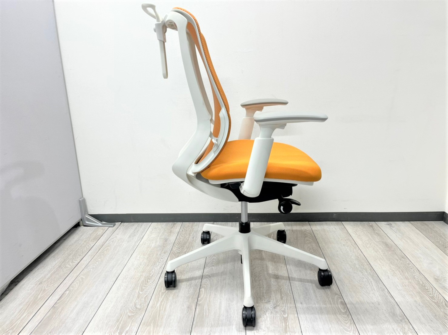 【在庫入替セール品!】【背のカーブを変えられる新感覚のオフィスシーティング!】■オカムラ シルフィーチェア 可動肘付 オレンジ ハンガー付 ホワイトフレーム ■新感覚のオフィスシーティング!【Okamrua Sylphy】
