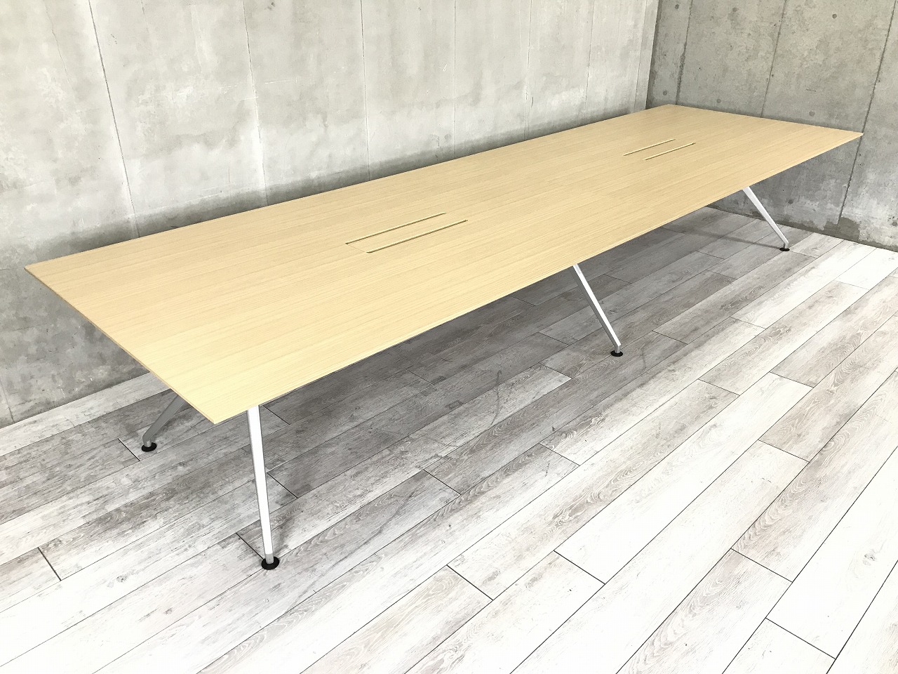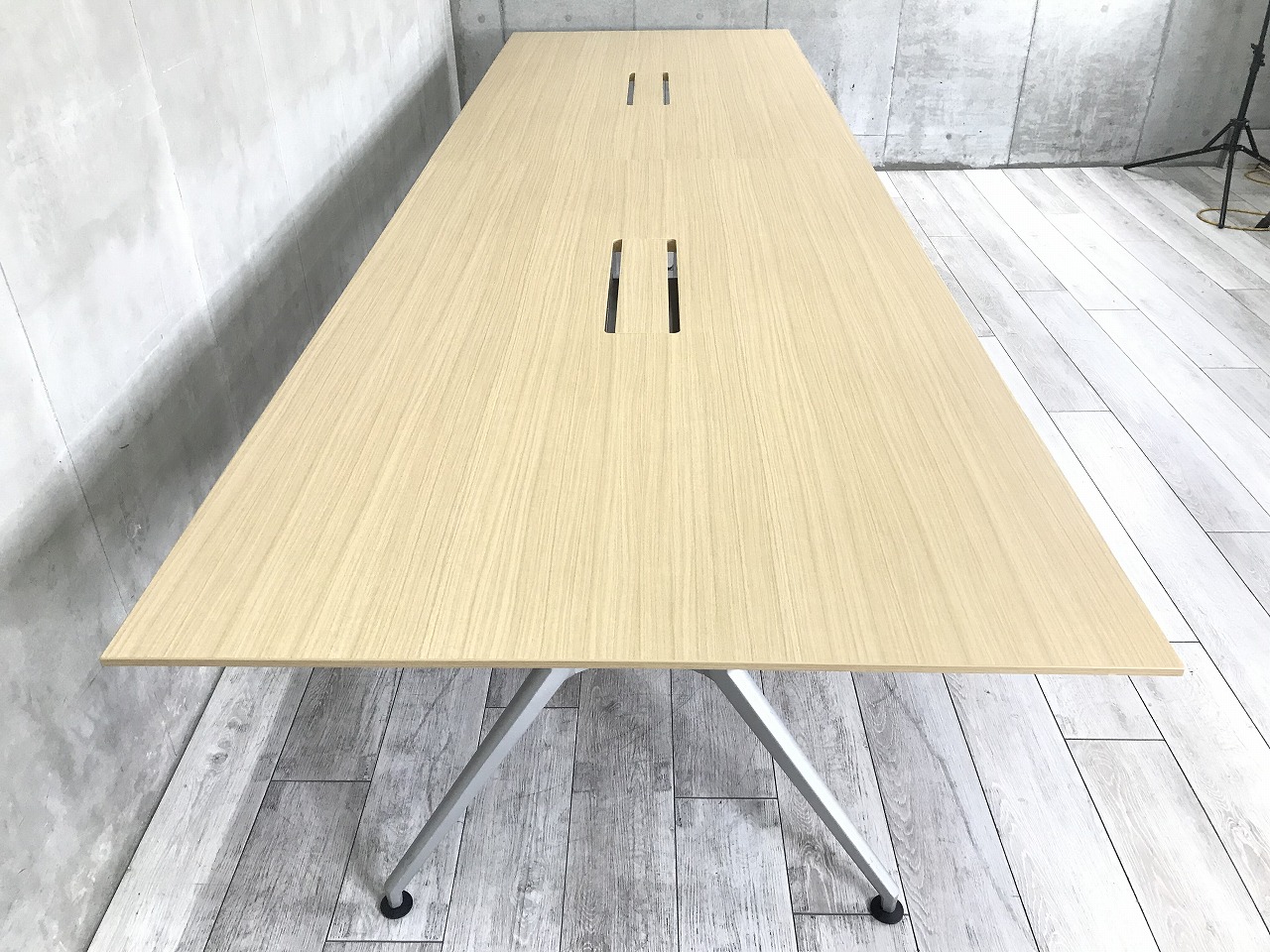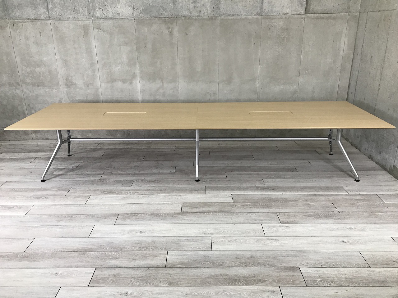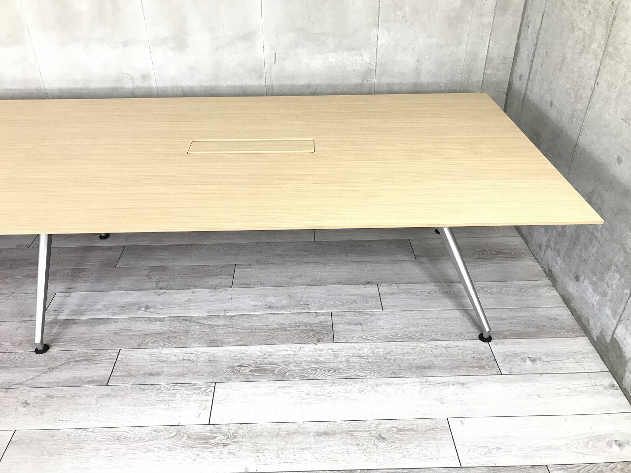 【会議室だけでなく休憩室でも!6~8名様対応・大型テーブル】■イトーキ(ITOKI) DDDシリーズ ミーティングテーブル 会議テーブル 幅2400×奥行900mm ■木目ナチュラル天板 脚シルバー色 オフィスバスターズ東大阪店