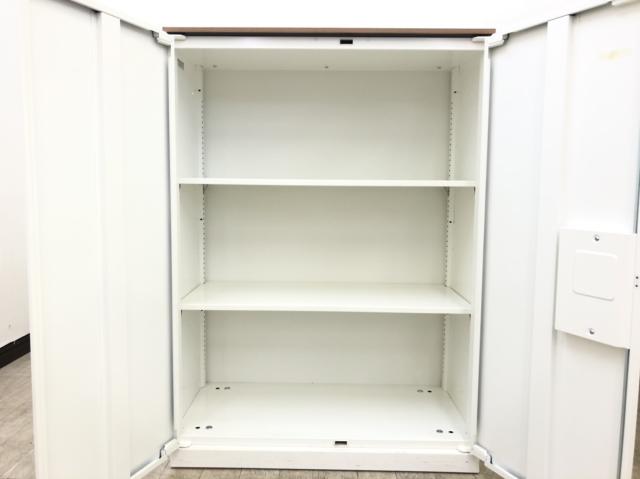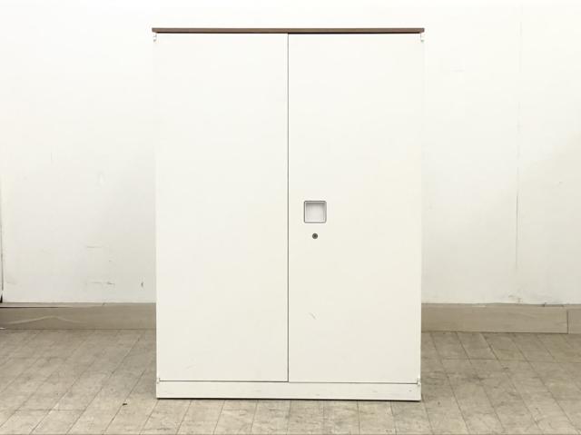 【残り1台の為特別価格】オカムラ レクトライン 珍しいサイズW800D400 木目の天板付き 両開き書庫 ホワイト おススメ- なんば日本橋店