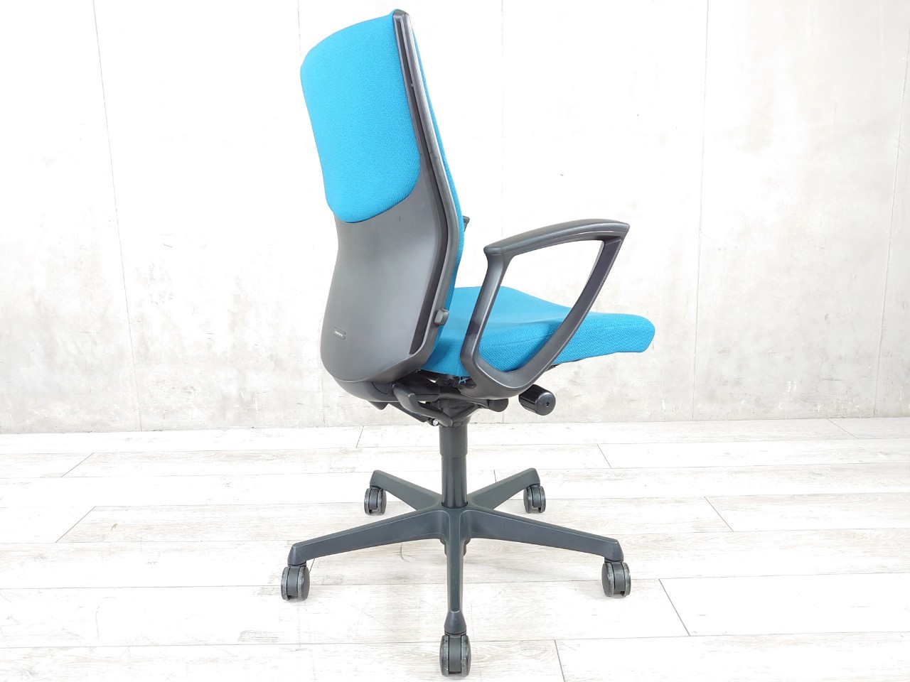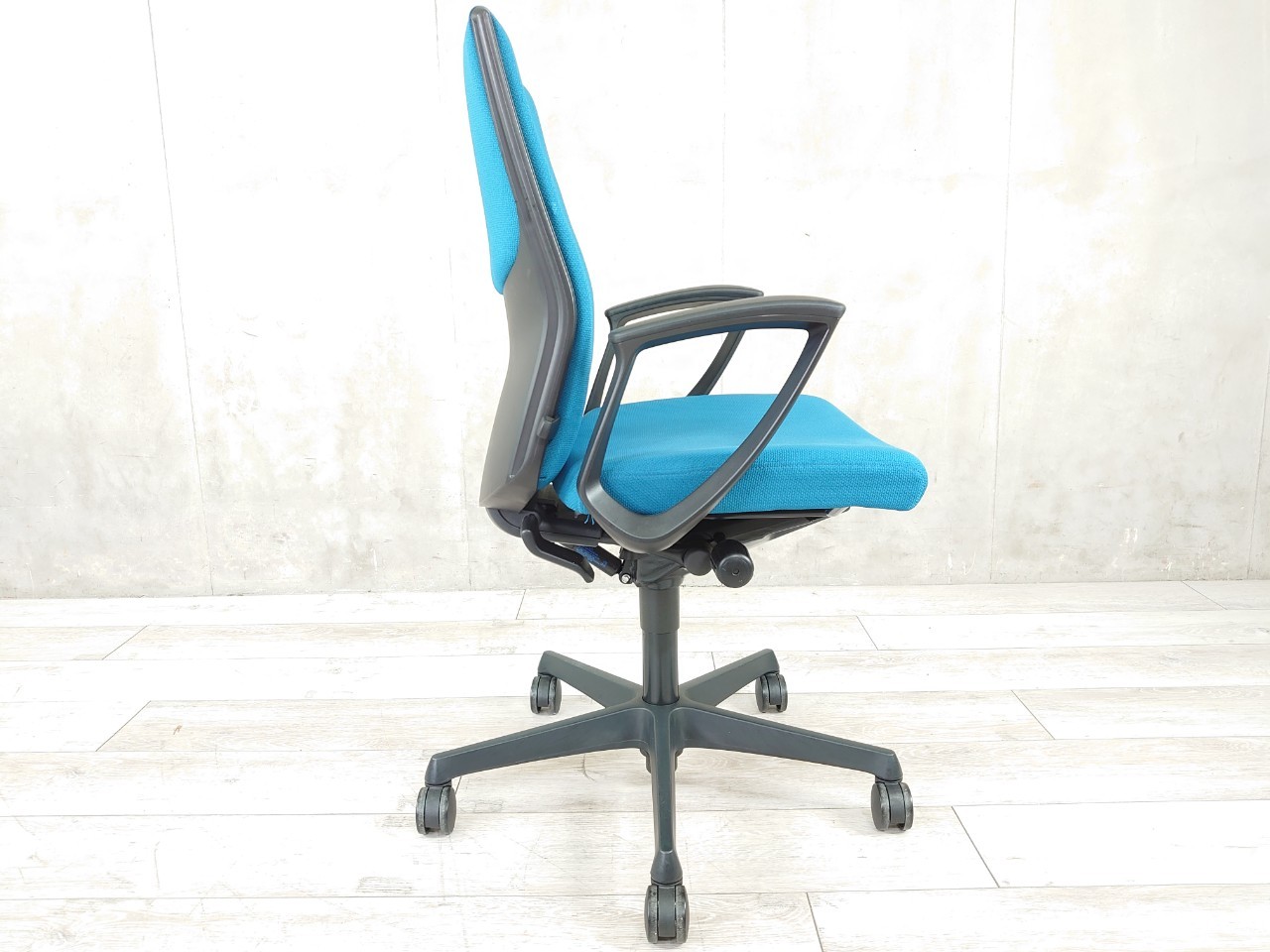 【スタンダードクラスで人気上位のワーキングチェア!人間工学に基づいた確かな座り心地!】■オカムラ(okamura)製 エスクードチェア(ESCUDO) 肘付き ハイバック 背面メッシュ ■サークル肘 ■ターコイズブルー ×ブラックシェル