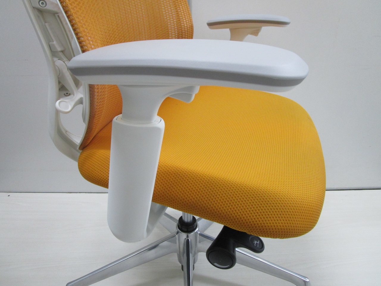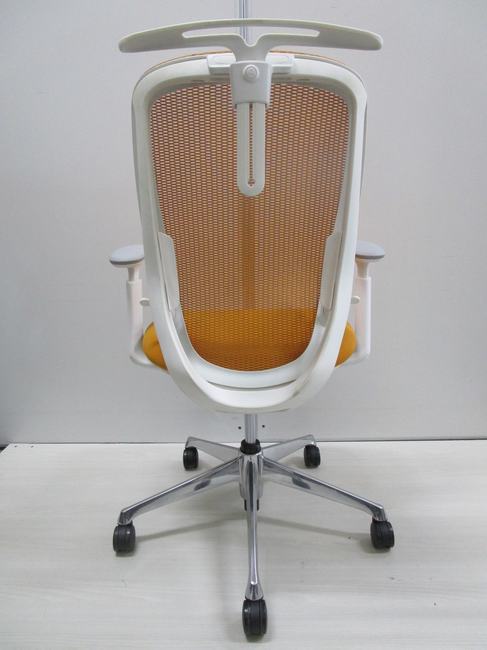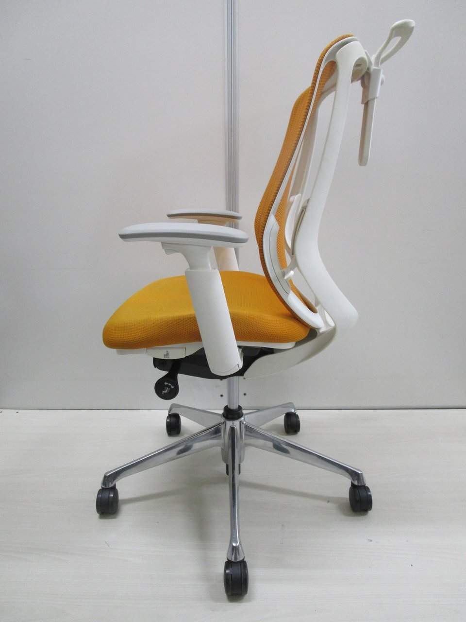 【在庫入替セール品!】【背のカーブを変えられる新感覚のオフィスシーティング!】■オカムラ シルフィーチェア 可動肘付 オレンジ ハンガー付 ホワイトフレーム ■新感覚のオフィスシーティング!【Okamrua Sylphy】