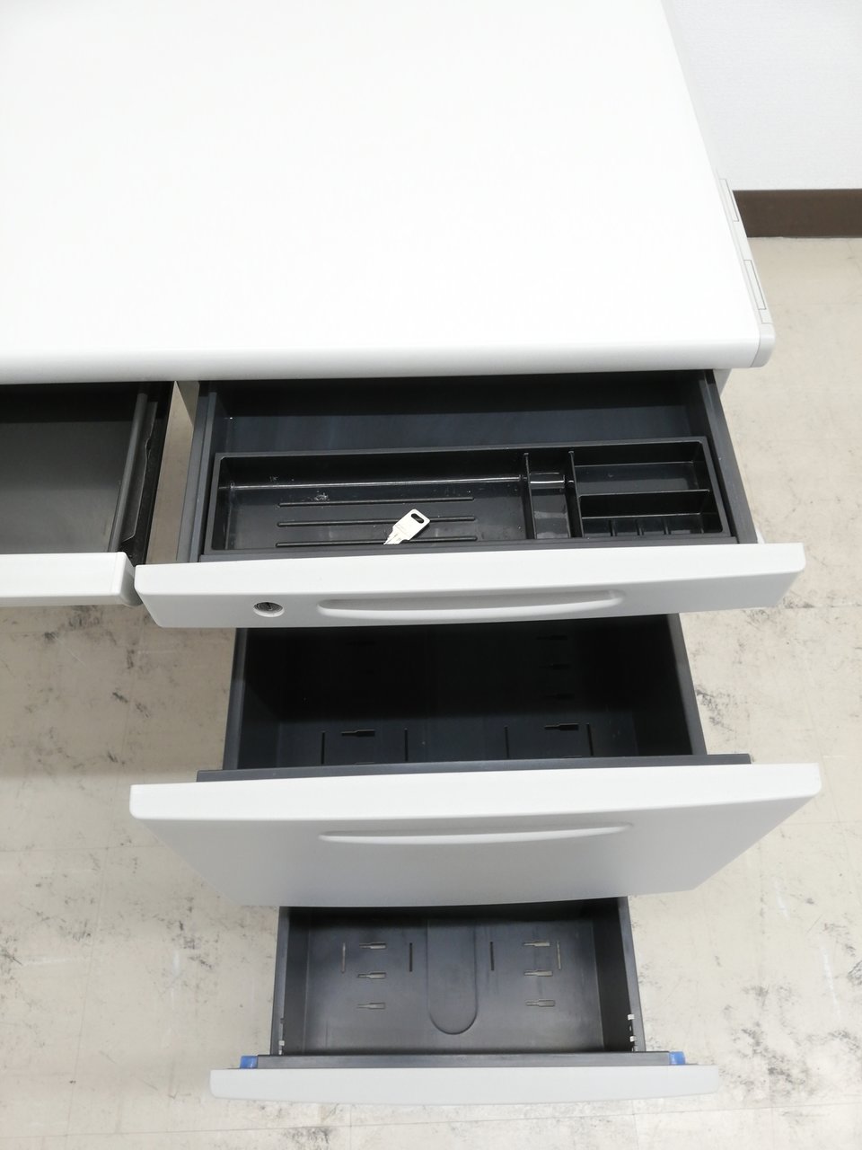 【状態良好】オフィス定番片袖机With3段引出し(A4×2段+小物1段)タイプ※大人気幅1000㎜◆オカムラ製【RP】- 埼玉本店