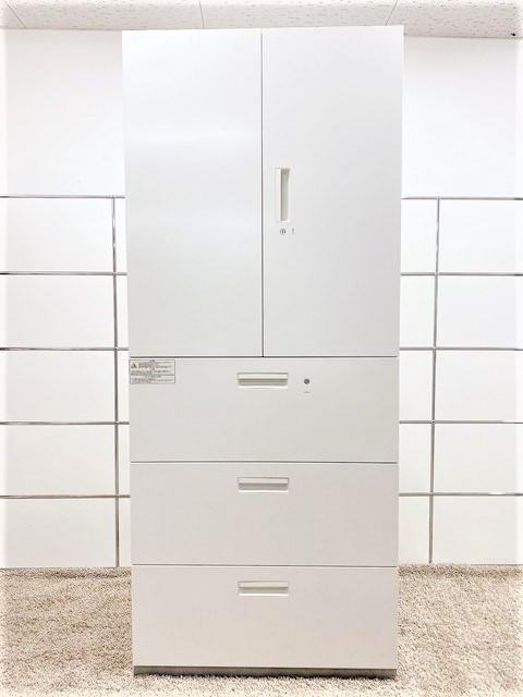 ★【T12】【商品入替のため、残り2台限り】プラス製 L6 ホワイト W900×D450×H2150 両開き+3段ラテラル シリンダー錠 オフィスの書類をスッキリ整理! 両開きと引き出し式の人気の組み合わせ! ハイキャビネット 上下書庫セット!!