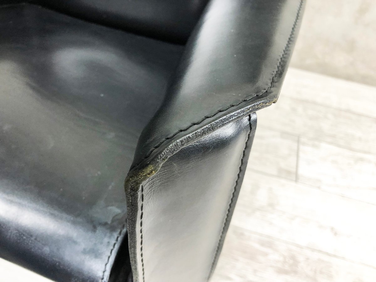 カッシーナ社のなめし革をまとった、重厚かつモダンな一品で、美しいシルエットはラウンジチェアとしてのデザインを見事に完結させています。