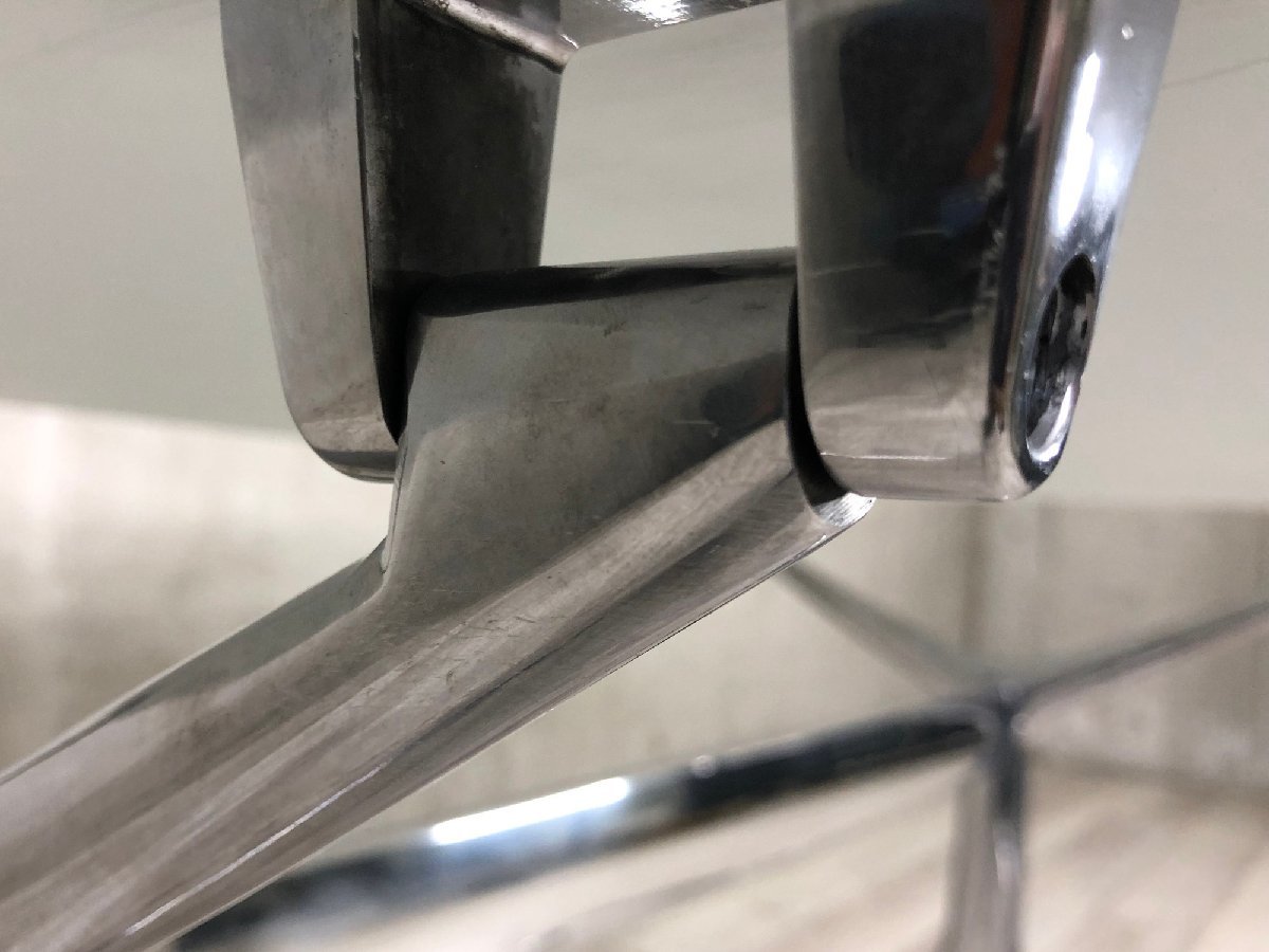 - 壊れている天板歪み、アジャスター無し、キャスター使用不可のようにそのテーブルの本来の効用を果たすための機能に不具合がある。
