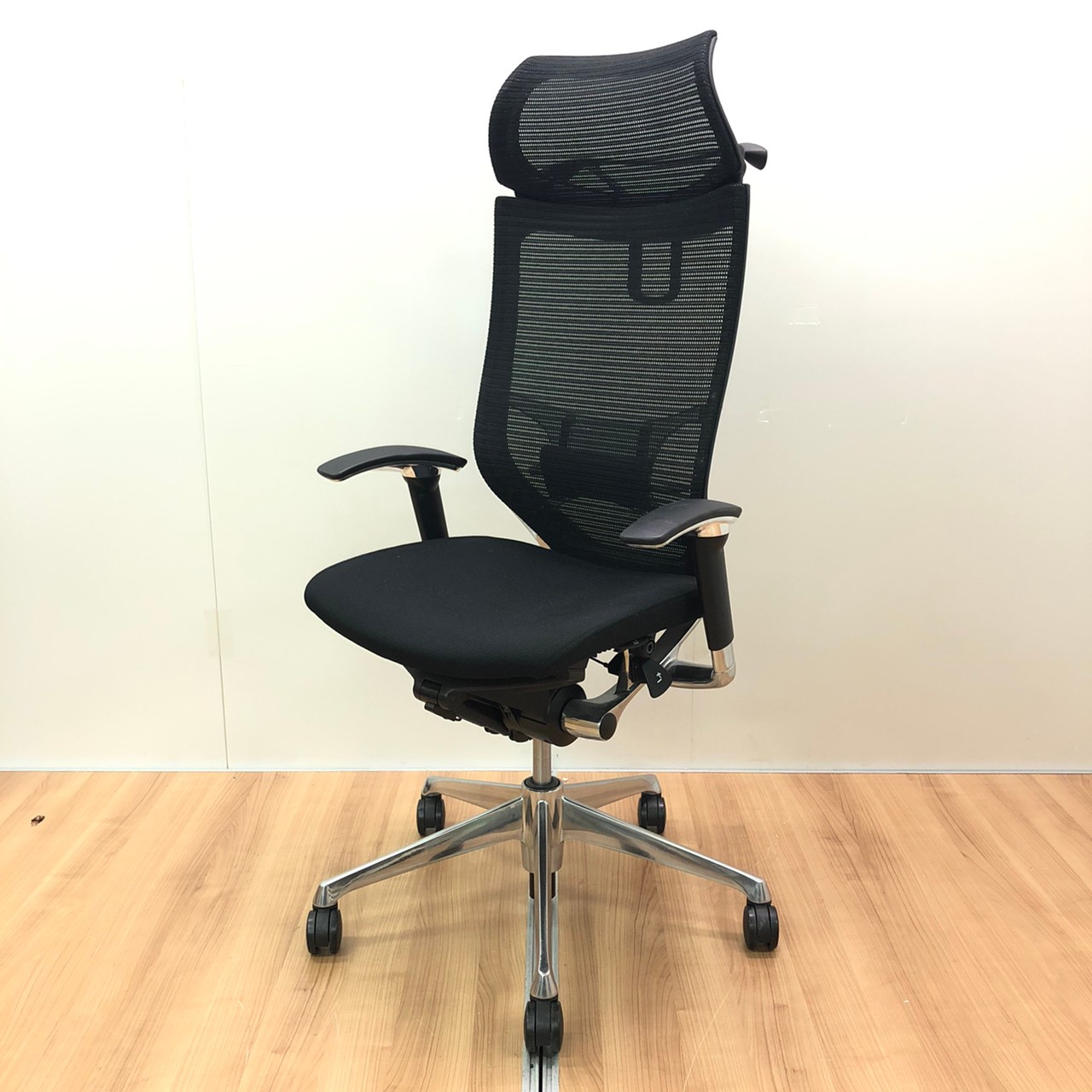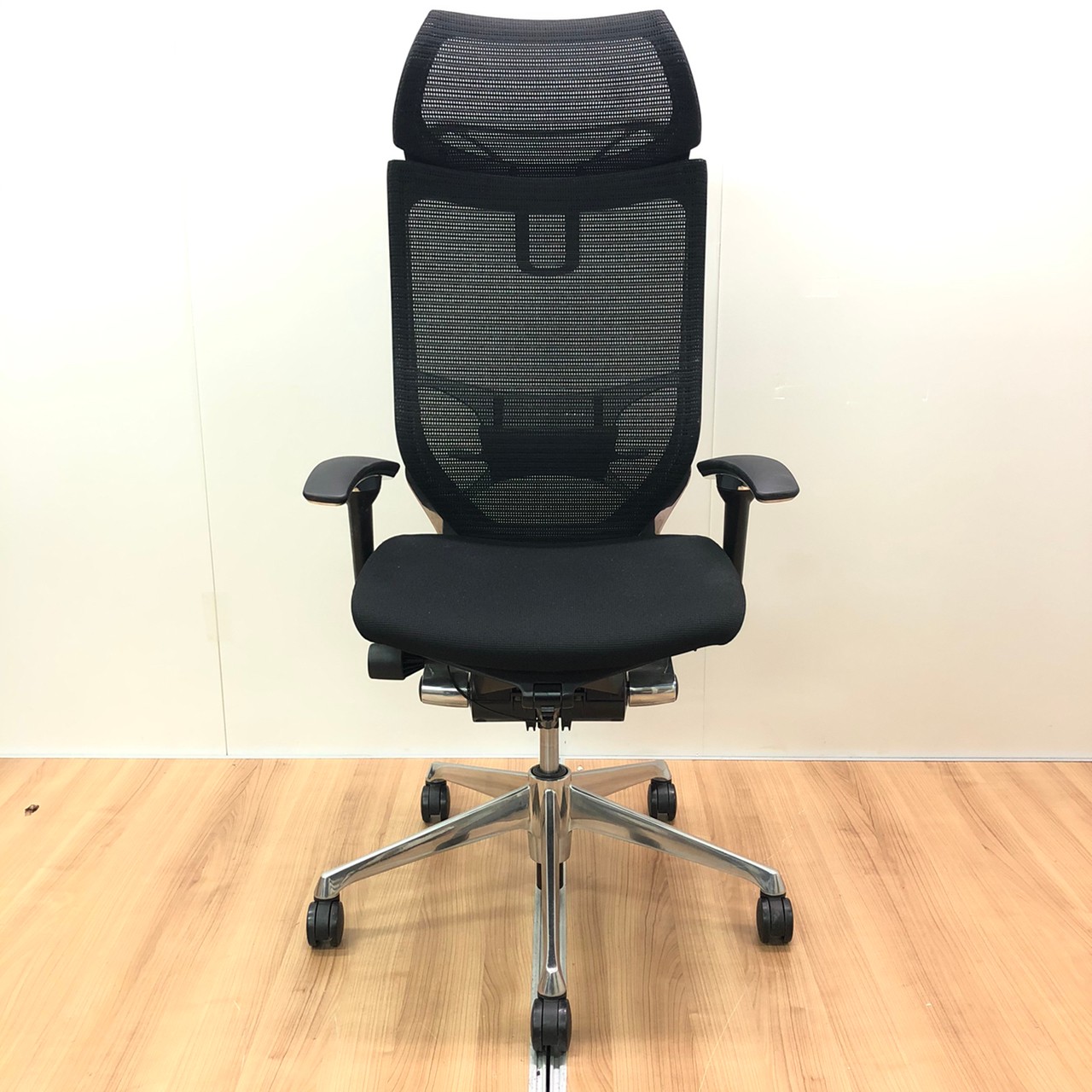 【座面メッシュ】スタンダードメッシュ ブラックフレーム アームレスト付き ヘッド付きオススメ(おすすめ) 大人気 ・Okamura/オカムラ ・Baron/バロン ※横浜本店撮影画像※