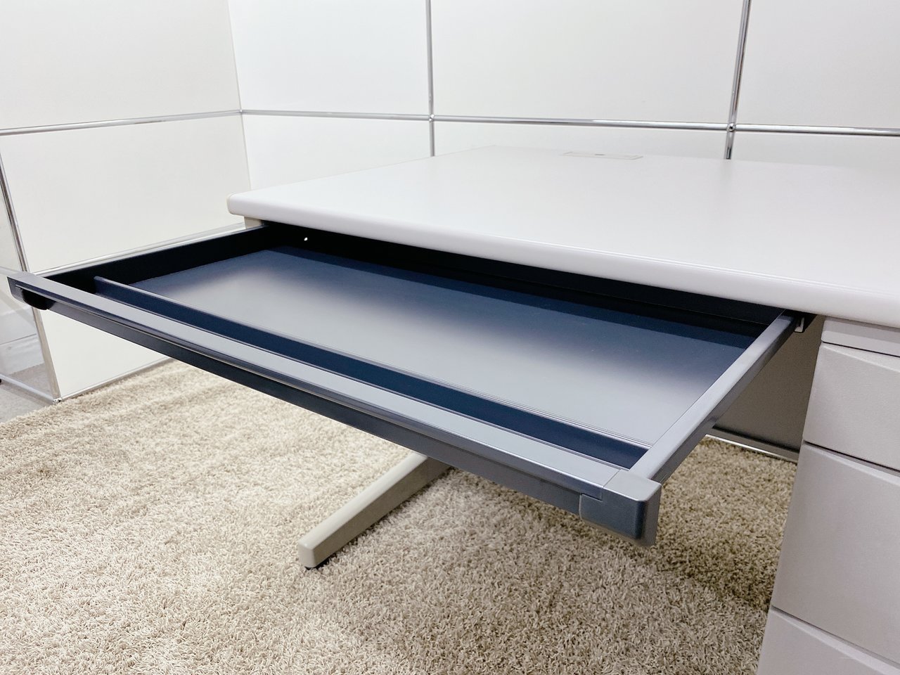 - 基本的なPCデスクの機能を有するコスパの良いシリーズ。収納力や引出しのロック機能などの安全機能も備えています。