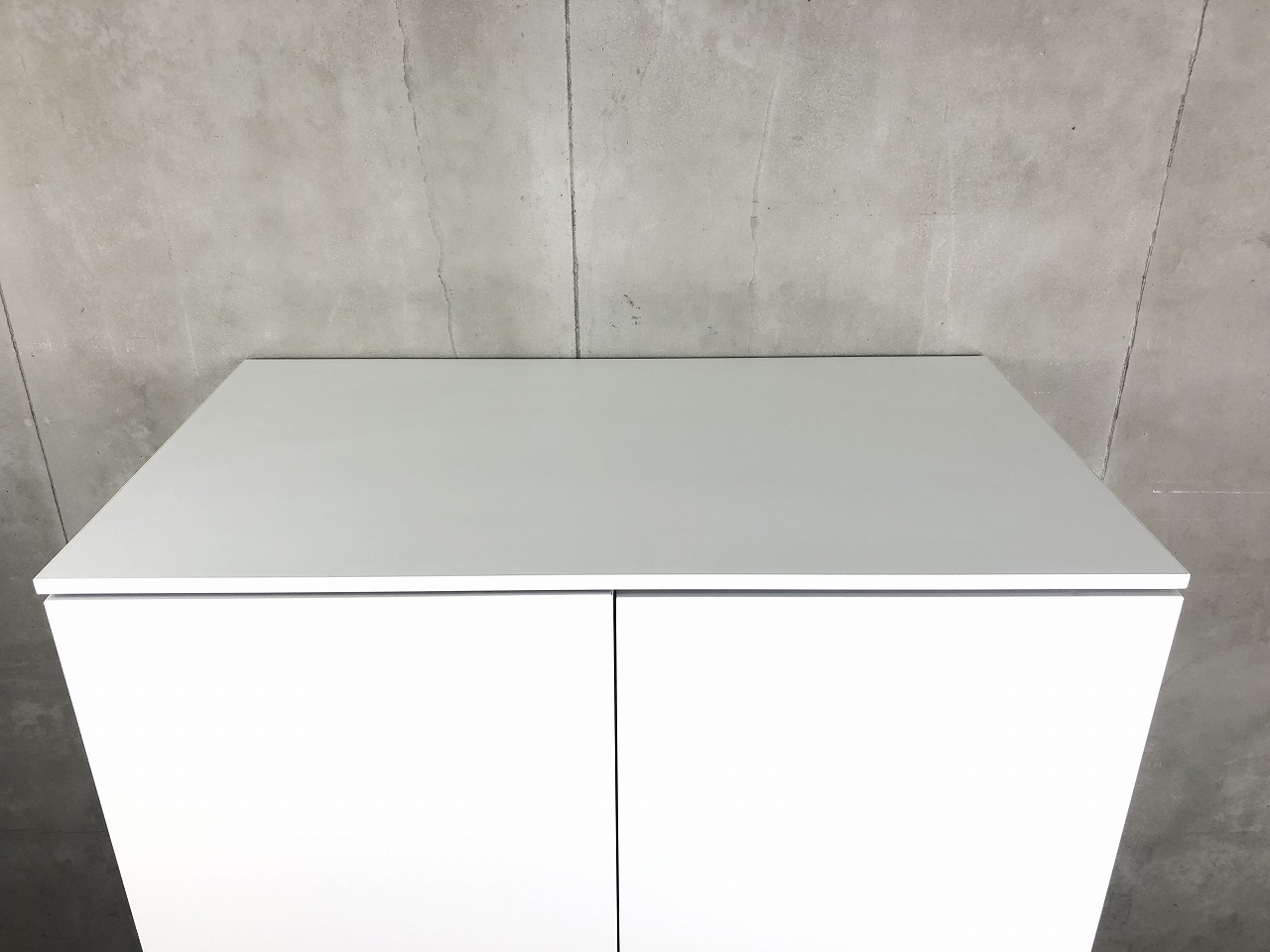 【オフィスの書類をスッキリ整理!取っ手がどの方向からでも開くマルチハンドル!】■オカムラ(okamura)製 レクトラインシリーズ 両開き書庫 ローキャビネット ■本体色:ホワイト ■シリンダー錠 ■ナチュラル天板付き