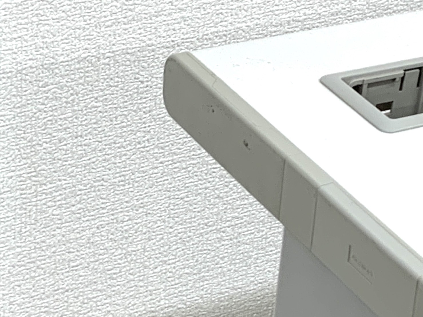 - 天板にコードホールが2ヵ所あり、レイアウト自在です。天板と幕版の間に30mmのすき間があり、対向配線も容易です。