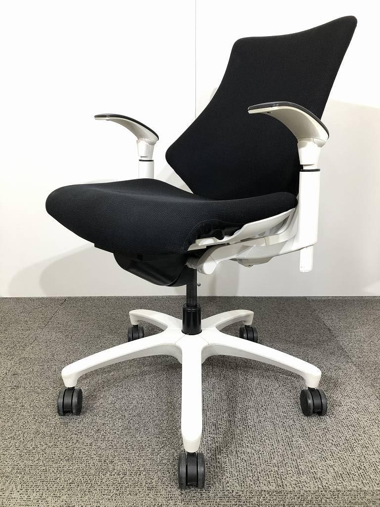 【三次元フォルムが腰にフィット!】希少なエラストマータイプ! ■イトーキ製 エフチェア 肘付 ブラック ハイバック ■姿勢の変化にフレキシブルに対応!