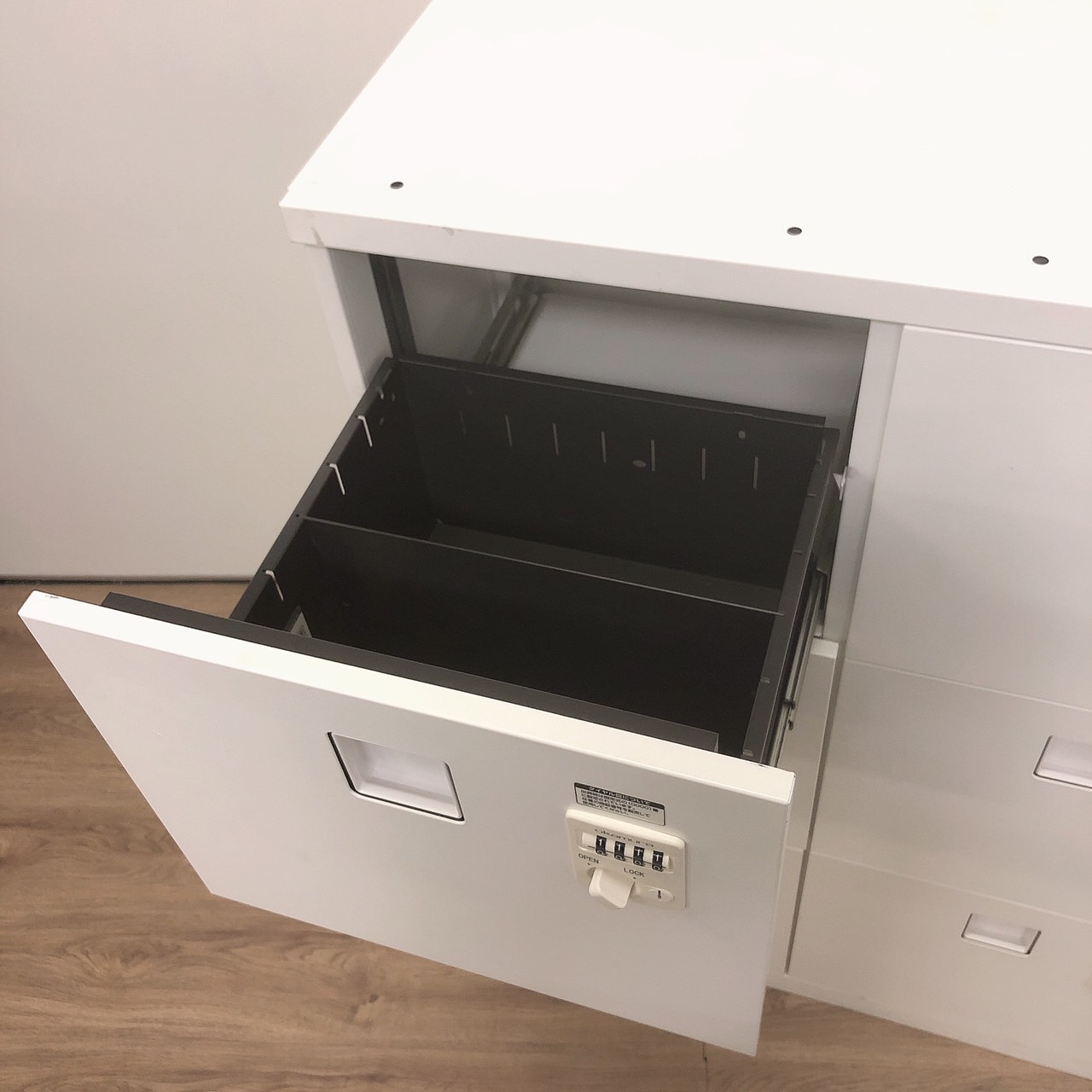 【オフィスの必需品!大容量の三段キャビネット!】■オカムラ(okamura)製 レクトラインシリーズ 3段ラテラル ローキャビネット ■天板/ベース付 ■シリンダー錠 ■ホワイト 【弊社使用欄:A01037187】