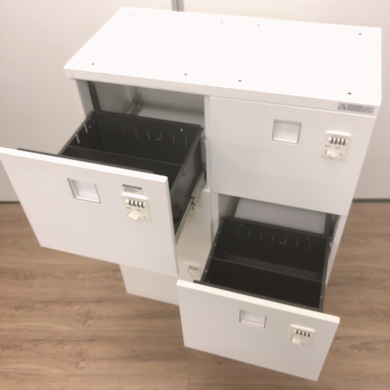 【オフィスの必需品!大容量の三段キャビネット!】■オカムラ(okamura)製 レクトラインシリーズ 3段ラテラル ローキャビネット ■ベース付 ■シリンダー錠 ■ホワイト 【弊社使用欄:A01037187】
