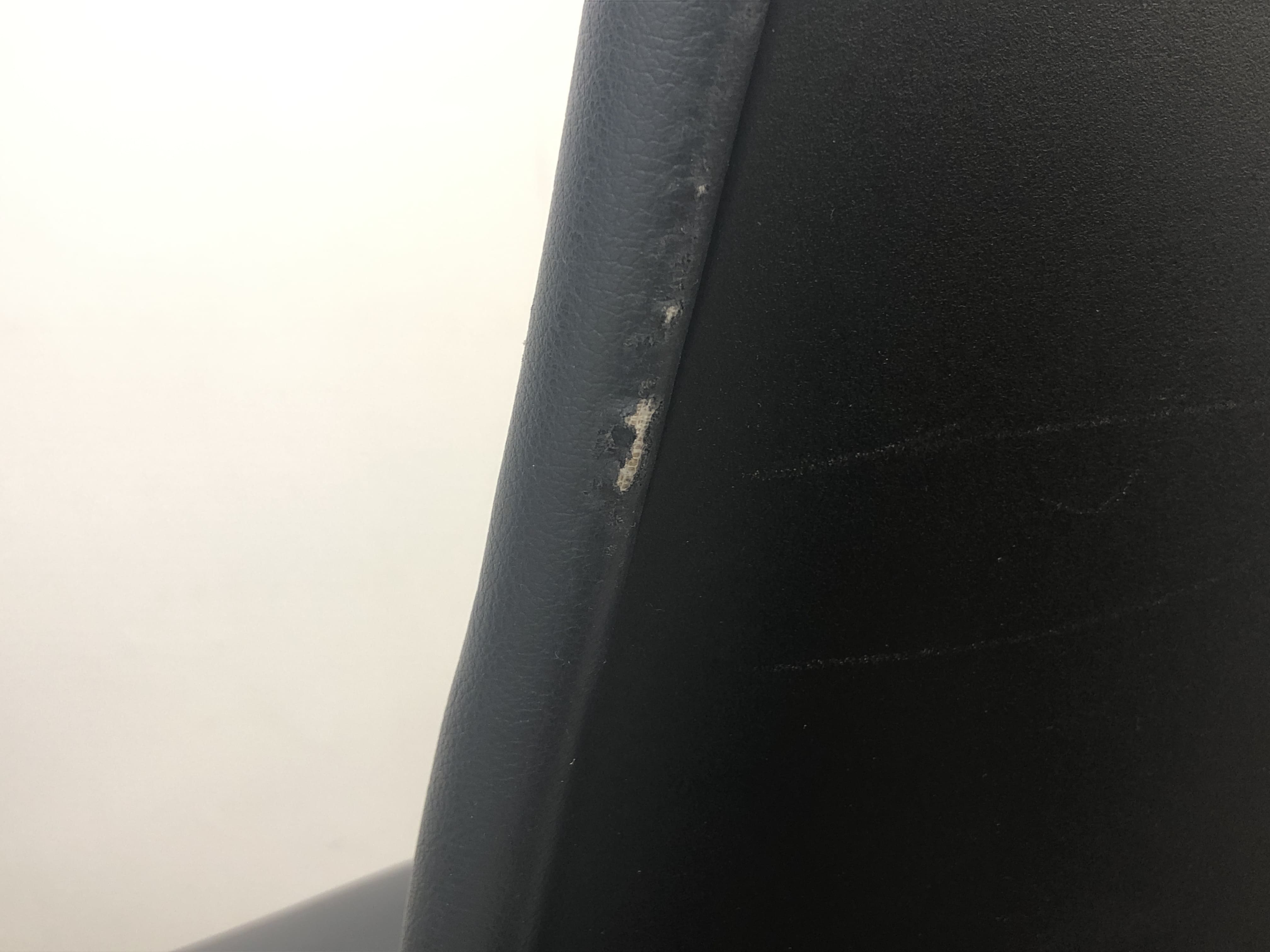 - あり黄ばみ・変色が広い範囲にうっすらある、または濃い黄ばみ・変色が一部ある。(例、座面・背もたれ、脚部等にある。)
